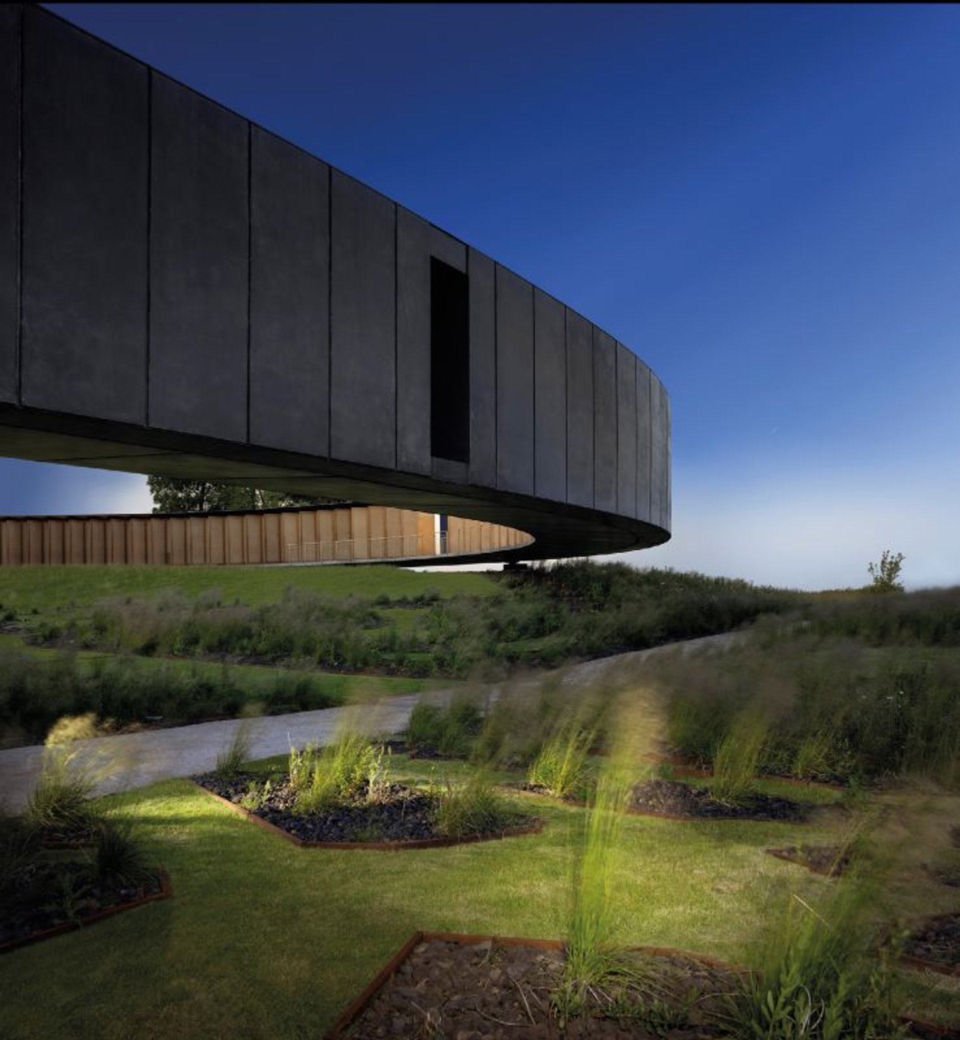 Vue extérieure de L’Anneau de la Mémoire – Mémorial international Notre-Dame-de-Lorette, à Ablain-Saint-Nazaire (Pas-de-Calais).