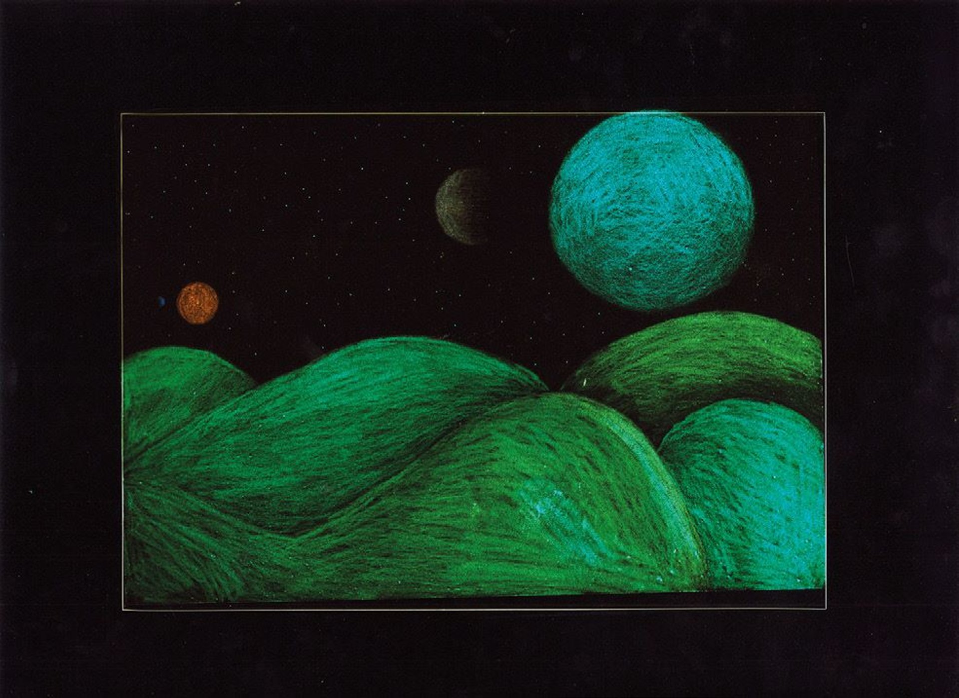 Embrasser toute la photographie, son histoire, ses savoir-faire, ses artifices, ses avatars… tel est le défi de Baptiste Rabichon – comme l’illustrait en 2024, à la Galerie Binome, son solo show « Dis-moi les détours ». Lauréat du prix Camera Clara en 2022, il expose – dans le secteur Process –, sa série Vues d’artiste (2022). Sur de petites feuilles de calque, il dessine des sphères, des points, des taches. Il dispose ensuite ses esquisses trans- parentes dans l’obscurité totale sur du papier photosensible avant d’enclencher l’agrandisseur. La lumière ayant traversé le calque, l’artiste obtient un authentique noir photographique qui englobe le dessin, transformant les motifs en autant d’univers fantasmés, peuplés d’astres et de paysages insolites.