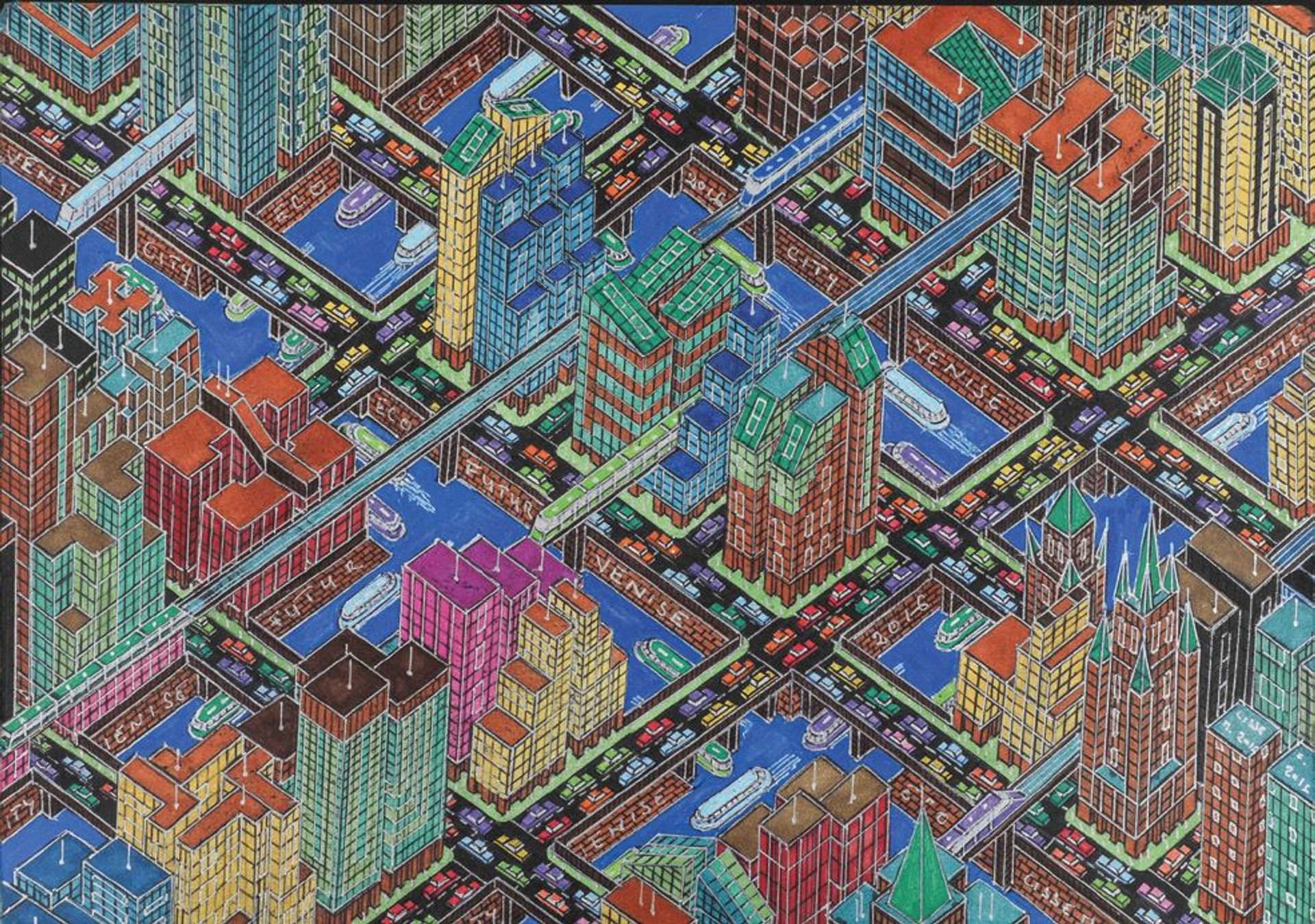 Mamadou Cissé, Eco Futur Venise, 2016, feutre, stylo BIC et gel sur papier.