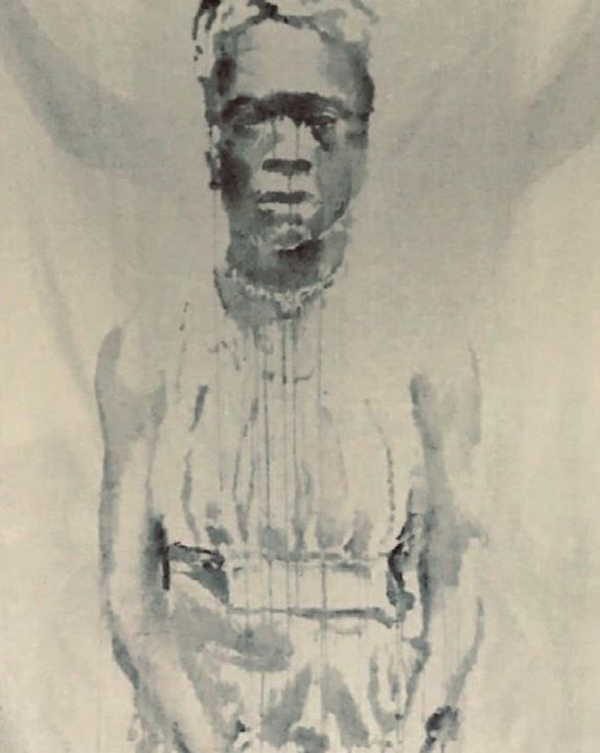 Roméo Mivekannin, Agoodjie de face Femme du Dahomey, 2021, lavis sur papier. Courtesy de l’artiste et de la galerie Eric Dupont