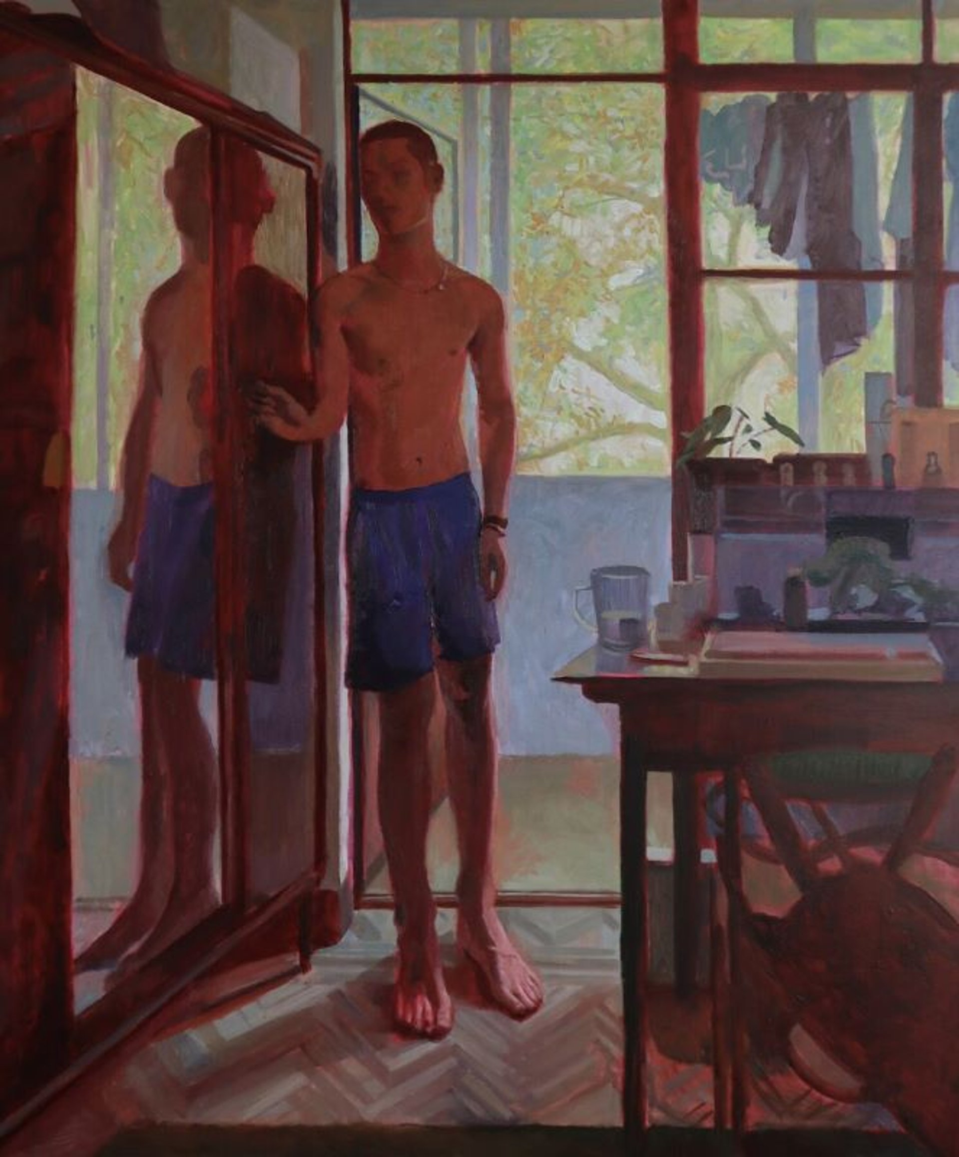 Sosthène Baran, Des figures, 2024, pigment et huile sur plâtre, bois et acier, 65 x 48 x 10 cm. Courtesy Panis