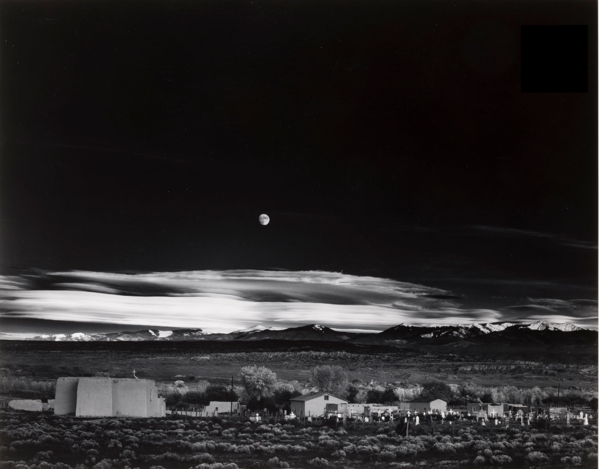 Ansel Adams, Moonrise. Hernandez, New Mexico, 1941, épreuve argentique, vers 1973). Courtesy Ader