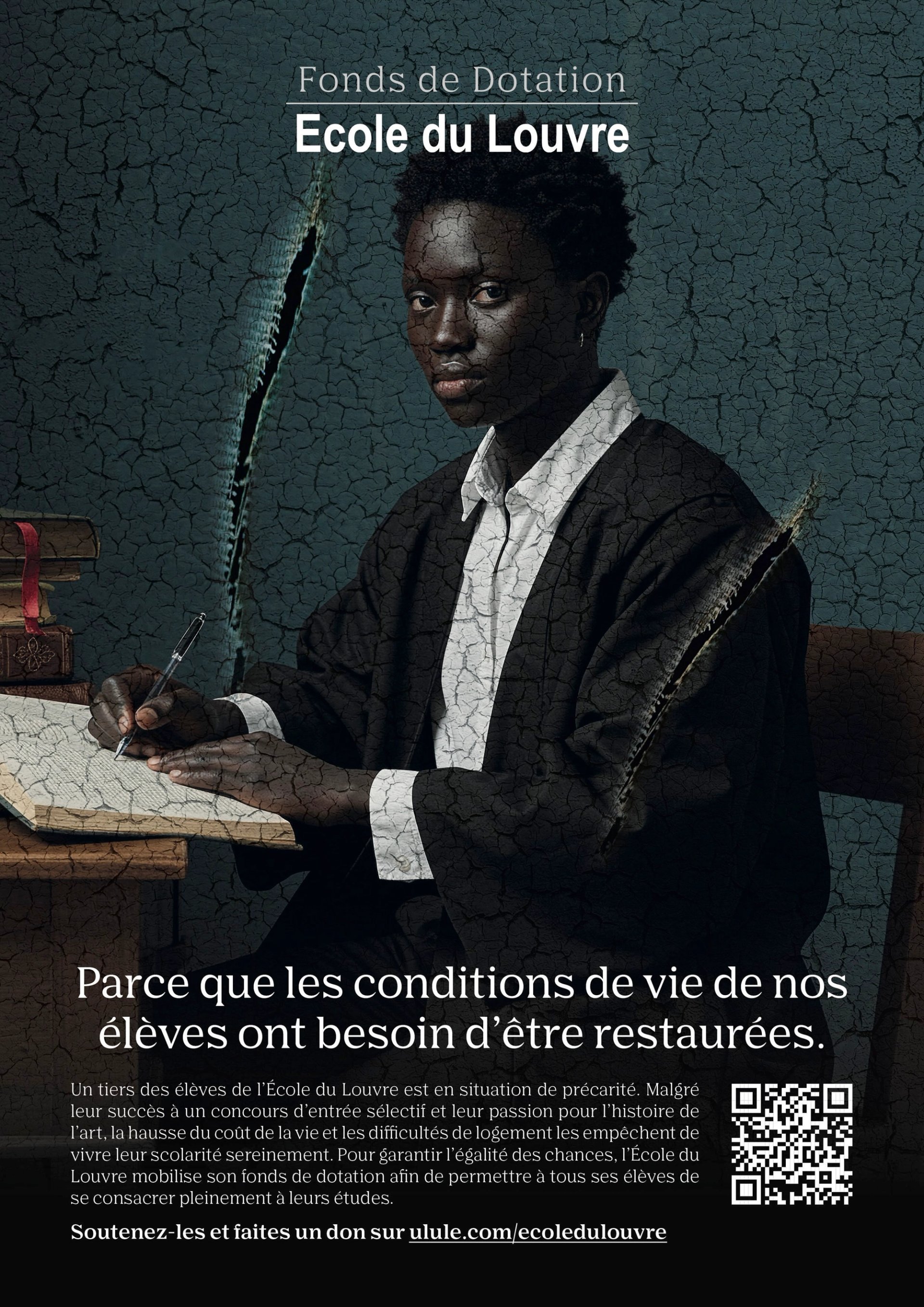Après s’être attachée à offrir aux étudiants les meilleurs outils pour leur apprentissage, l’École du Louvre se préoccupe aujourd’hui de leurs conditions de vie. En effet, ce lundi 28 avril 2025, Claire Barbillon, la directrice de l’établissement et de son Fonds de dotation, a lancé officiellement la première campagne de financement participatif de l’école, destinée à combattre la précarité étudiante. Selon l’institution, « un tiers des élèves de l’École du Louvre est en situation de précarité. Malgré leur succès à un concours d’entrée sélectif et leur passion pour l’histoire de l’art, la hausse du coût de la vie et les difficultés de logement les empêchent de vivre leur scolarité sereinement. Pour garantir l’égalité des chances, l’École du Louvre mobilise son fonds de dotation afin de permettre à tous ses élèves de se consacrer pleinement à leurs études ». L’école pointe l’augmentation du coût de la vie étudiante (de 7 % en 2023), conduisant près de 20 % des étudiants à ne pas manger à leur faim ! L’établissement lance donc, de ce lundi 28 avril au vendredi 6 juin 2025, une campagne de financement participatif pour aider ses étudiants, accessible à partir de ce lien : https://fr.ulule.com/ecoledulouvre/. Les dons sont en partie défiscalisés. En fonction des sommes récoltées, l’École du Louvre se donne trois missions : répondre aux urgences (dons de 0 à 50 000 euros) ; alléger le coût du logement (de 50 001 à 150 000 euros) ; et verser des bourses pour vivre (à partir de 150 001 euros). Pour aider la future génération de professionnels de l’art, il est temps de faire preuve de générosité !