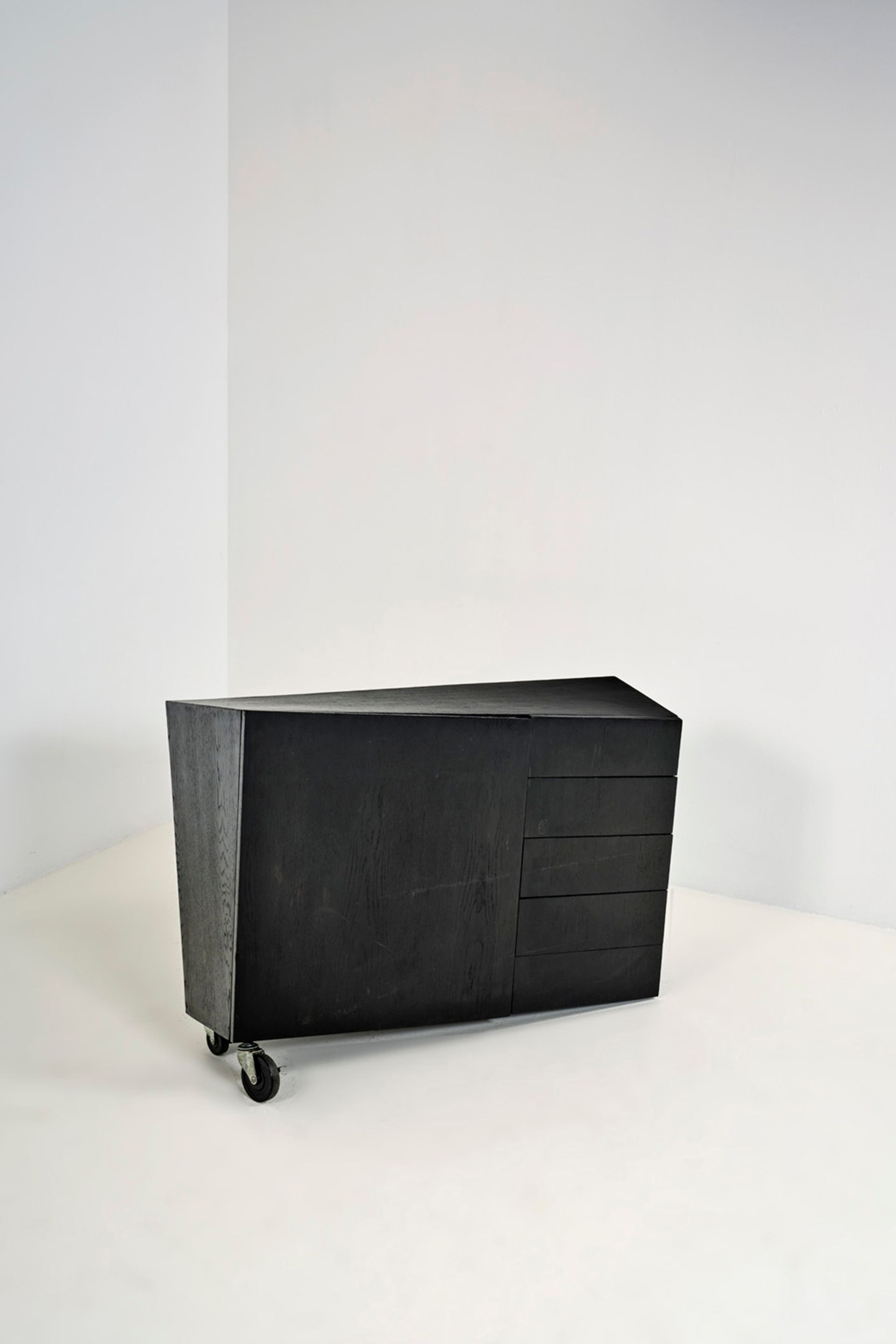 Paolo Pallucco & Mireille Rivier, cabinet - modèle Il Toro con Cassetti, prototype, frêne ébonisé et acier, 1980, H 85 x L 116 x P 42 cm. © Xavier Defaix. Courtesy Piasa