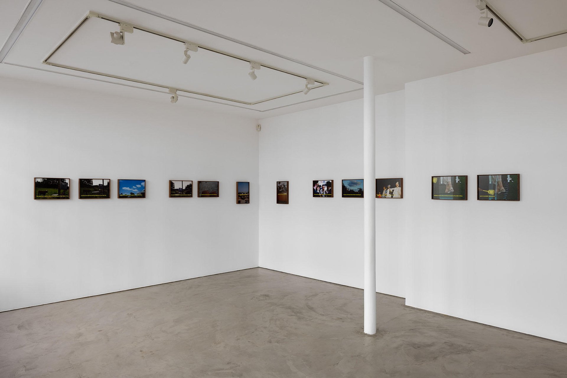 Basma al-Sharif avait rencontré la locution « Semi-nomadic debt-ridden bedouins » (Bédouins semi-nomades endettés) pour désigner le peuple de Palestine dans un texte de propagande sioniste, alors qu’elle était encore étudiante à Chicago. Elle en avait fait le titre d’une de ses premières œuvres en 2006. Celle-ci lui avait été inspirée par un événement tragique survenu la même année sur une plage de Gaza : une jeune fille avait vu devant elle toute sa famille massacrée par un tir de missile. Sous douze photographies sans rapport direct avec cet épisode, mais toutes rattachées au Moyen-Orient, Basma al-Sharif déroulait comme en sous-titres le monologue intérieur d’une des victimes ou de la survivante. On peut interpréter la décision de présenter à nouveau cette œuvre comme un acte de foi dans le travail artistique face à la persistante négation de l’autre. En rapport, l’artiste expose une œuvre nouvelle. Ce sont des photos de petit format, 19 exactement, toutes encadrées, comme des fragments d’un journal, et entre lesquelles sont intercalées les strophes d’un poème en anglais sur six feuilles de papier-calque. Une œuvre facile à transporter et à installer, bien dans l’esprit nomade. Le poème s’achève sur ces mots : « tandis que l’humidité continuait d’effacer le sang du sable, nous sommes retournés à pied par la route Salah ad-Din ». Au sous-sol de la galerie est projetée une courte séquence filmée, la promenade à cheval de deux jeunes femmes, dont la cinéaste, au bord de la mer, il y a quelques années, à Gaza, et quelques mots prononcés pour en saluer la beauté.