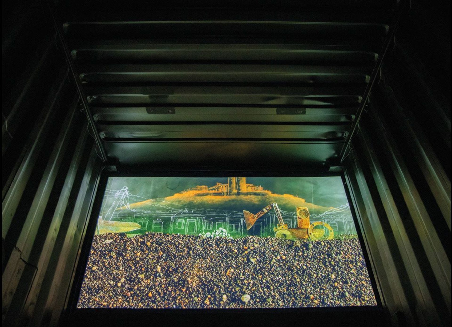 Projection du court métrage documentaire animé Machini (2019) de Frank Mukunday & Tétshim dans un des conteneurs de la section art vidéo El Kazma. Courtesy du Gabes Cinéma Fen