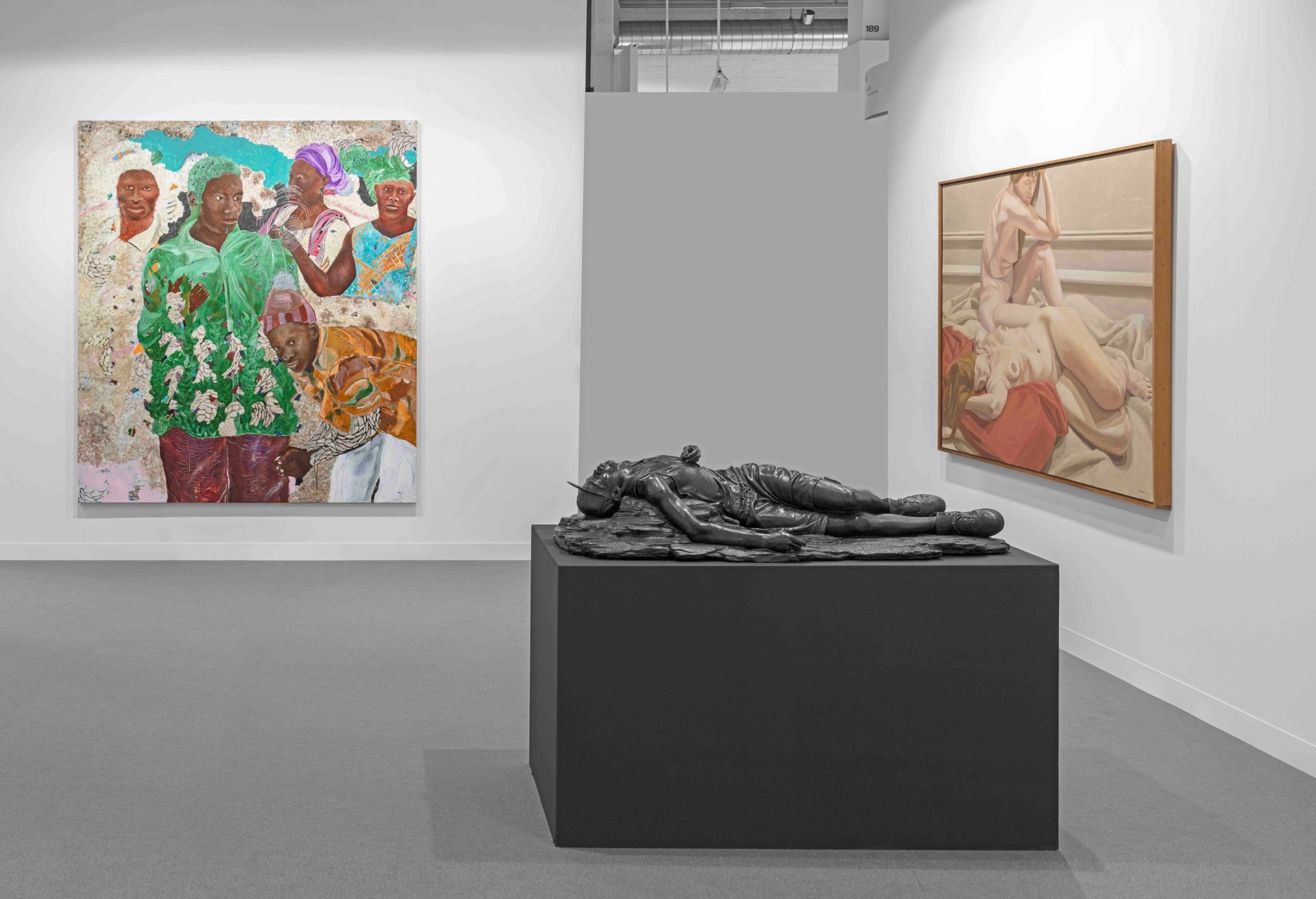 Certains ne s’y sont pas trompés et ont craqué pour une sculpture de Ruth Asawa à 9,5 millions de dollars chez Zwirner (qui a cédé 68 œuvres au total !) ou une peinture de Miriam Cahn à 300 000 euros chez Jocelyn Wolff. Sur le stand de la galerie Perrotin, les artistes Mr., Genesis Belanger et Izumi Kato ont fait sold out, à des prix allant jusqu’à 250 000 dollars, l’enseigne se délestant entre autres d’une œuvre de Takashi Murakami à 550 000 dollars. Sur le stand de la galerie Templon, dès l’ouverture, le 17 juin, ils ont craqué pour une œuvre de François Rouan de 1972, un Anthony Caro à 200 000 euros et plusieurs dessins de Chiharu Shiota. Soit au total 7 œuvres en une heure ! La galerie, qui montre des œuvres importantes d’Omar Ba ou un portrait par Kehinde Wiley à un demi-million de dollars, a vu passer des Indiens, des Turcs, des Suisses, des Américains… « C’est un bon signe pour la suite quand la foire démarre comme ça, et ça montre que l’impact de la Foire de Bâle est intact pour vendre à des prix élevés », note Daniel Templon. Dans l’ensemble plus centrés sur des œuvres à quelques centaines de milliers d’euros, avec davantage de négociations, les achats importants se poursuivaient toutefois aussi au dernier étage dans les showrooms privés d’une partie des exposants, plus que jamais attractifs dans cette période où vendre en toute discrétion présente bien des avantages…