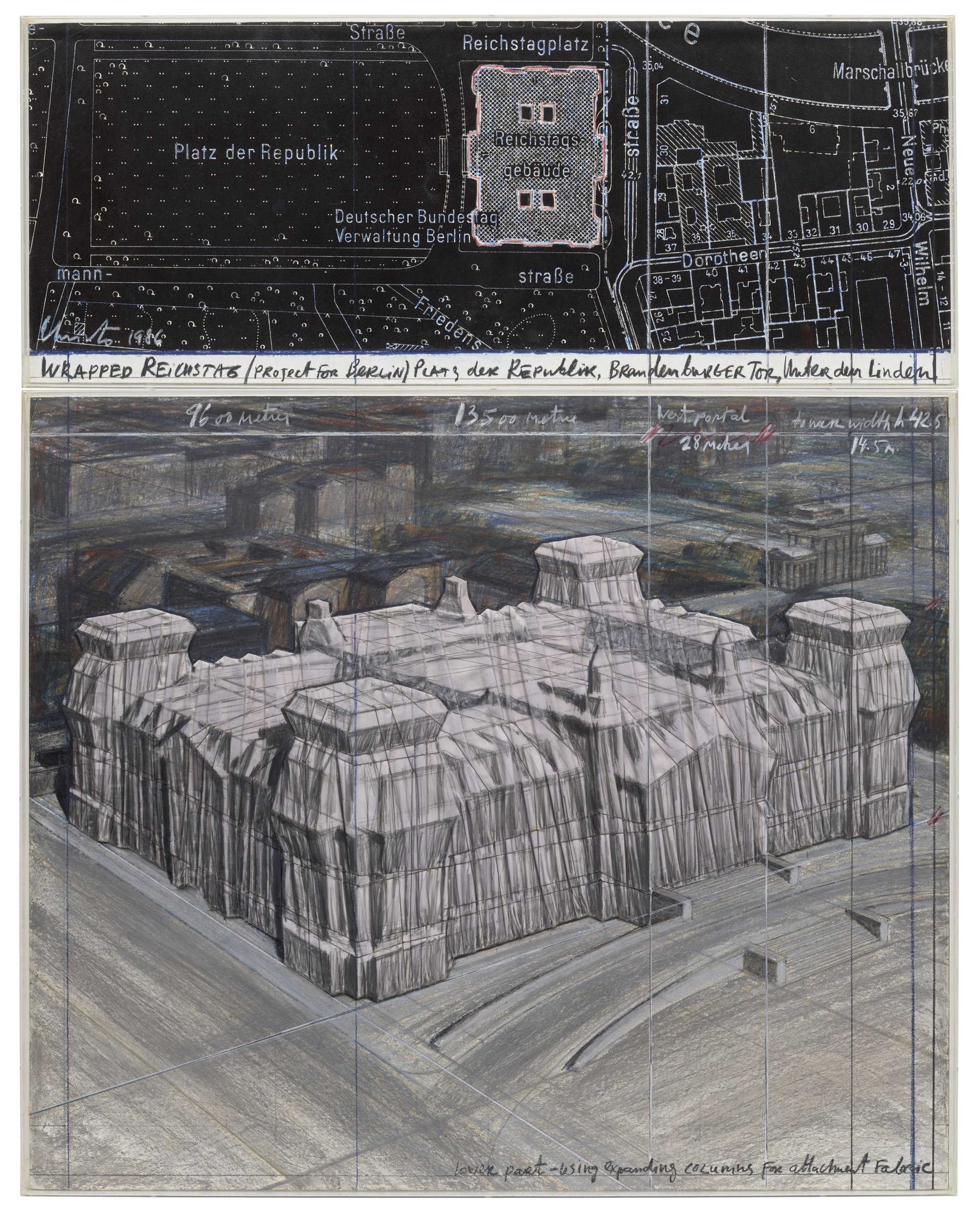 Christo, Wrapped Reichstag (Project for Berlin), 1986. Courtesy of Phillips