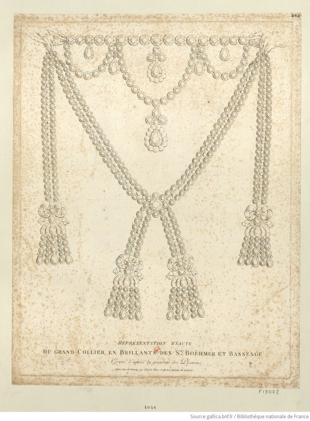 Représentation exacte du grand collier en brillants des Srs Boehmer et Bassenge, gravure de Nicolas Antoine Taunay, ca 1786. Eau-forte, 47,5 x 37 cm. © BnF, département des Estampes et de la photographie. Réf. De Vinck, 1046 / Hennin, 10097.