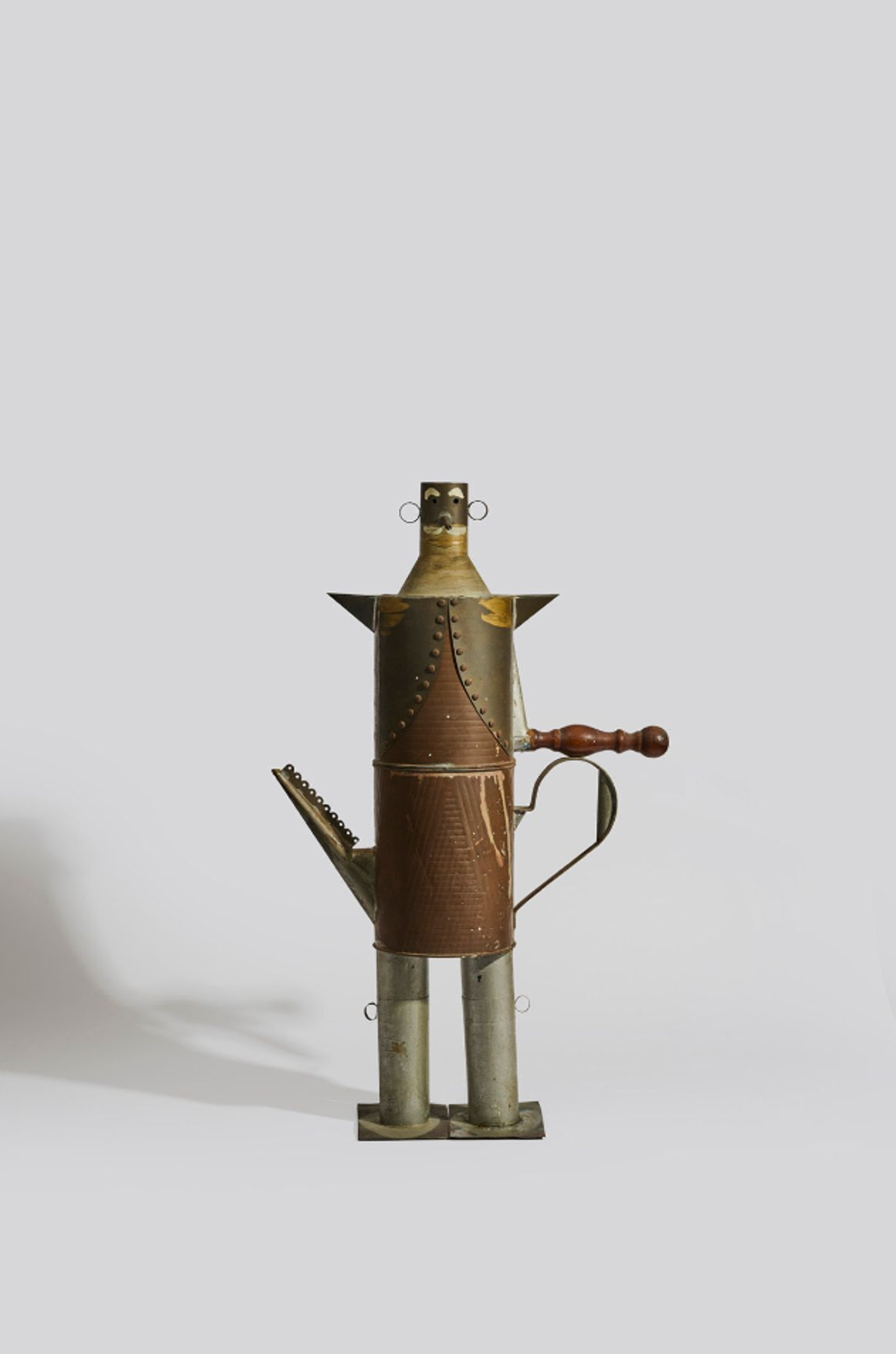 Riccardo Dalisi. Caffetiera In-Divisa, 1985, sculpture en cuivre, fer, étain et bois, 70 x 43 x 15 cm. Courtesy Piasa
