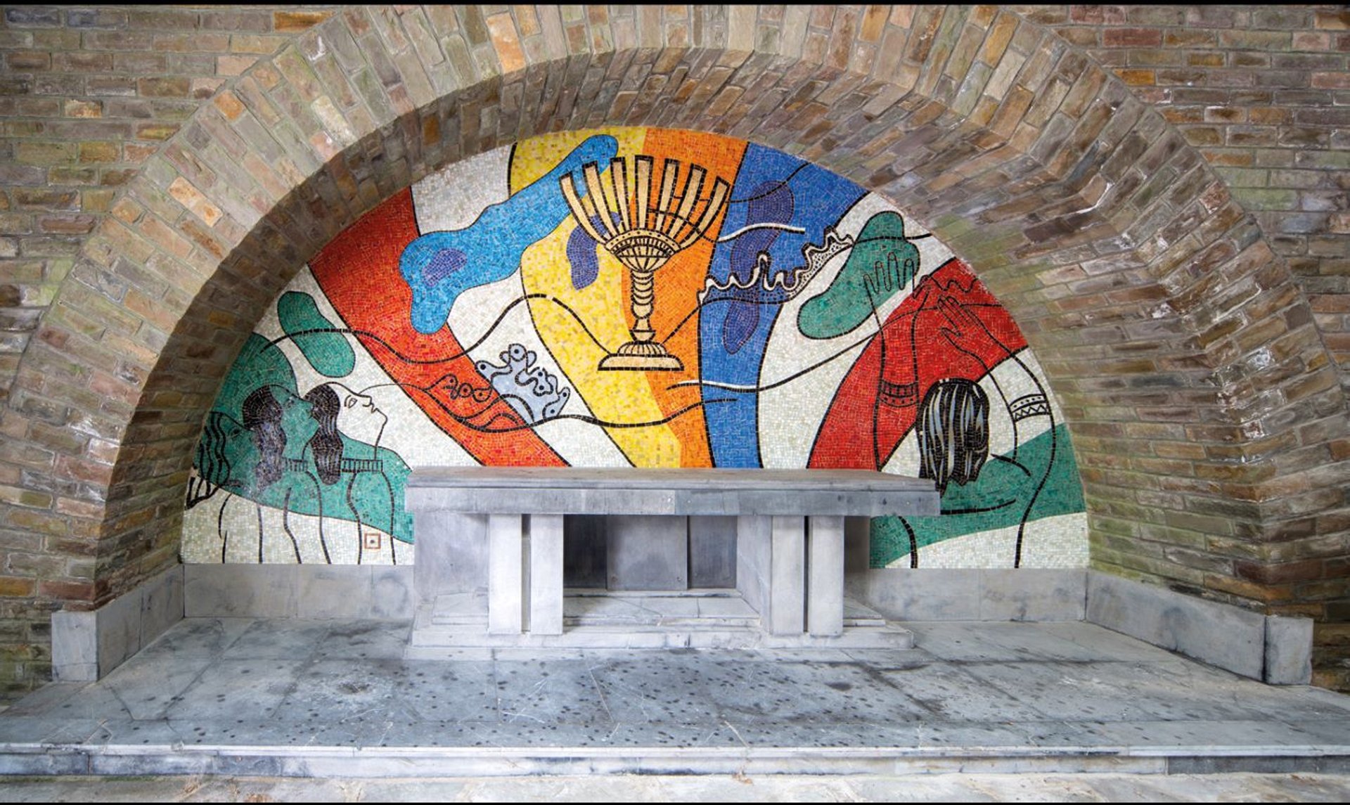 Fernand Léger, mosaïque du culte juif dans la crypte du Mémorial de Mardasson, à Bastogne. Photo Jean-Pierre Ruelle