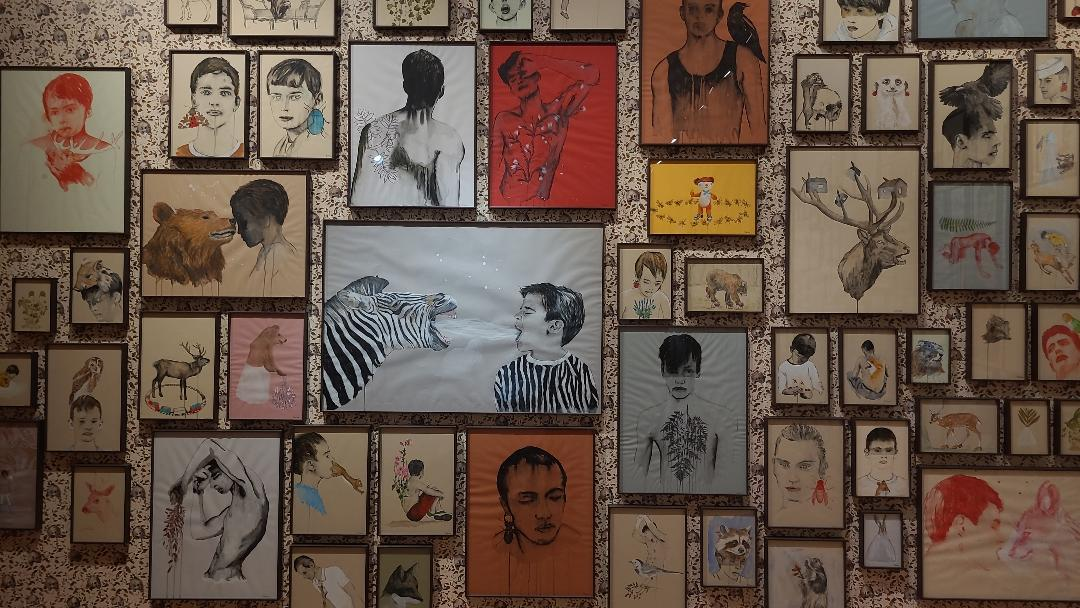Il est difficile de faire totalement abstraction du parcours d’Edi Dubien en visitant l’exposition, parcours qui donne aux œuvres une consistance supplémentaire. Ce n’est pas un hasard si une cinquantaine de ses dessins avaient été intégrés dans « Lacan, l’exposition. Quand l’art rencontre la psychanalyse » au Centre Pompidou-Metz en 2023. Autodidacte, l’artiste, né dans les années 1960, n’a guère eu une enfance heureuse, prisonnier d’un corps de fille, avant d’opter pour une transition. Difficile donc de ne pas voir dans son travail un regard nostalgique sur ce qu’il n’était pas encore pleinement à ce moment-là. Un troublant travail de reconstruction mémorielle qui passe aussi par les motifs de crânes reproduits sur le papier peint et même sur les banquettes du rez-de-chaussée, allusion à la résurrection qui peut suivre la mort, comme l’explique l’artiste dans un entretien avec le commissaire Rémy Provendier-Commenne publié dans le catalogue. « Il ne cache rien, mais ne veut pas être un étendard de cette cause, il veut avant tout être reconnu comme artiste », confie son galeriste, Alain Gutharc. Avant d’ajouter : « son univers, son œuvre touche tout le monde ».
