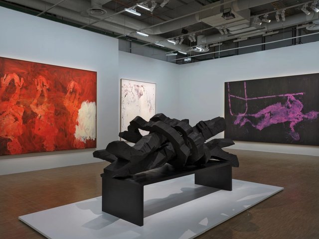 Au premier étage, précisément, les ensembles dévolus aux mouvements Dada et Fluxus – pas toujours évidents à réussir – sont des plus convaincants. Entre les deux, des œuvres de référence de Daniel Spoerri, Arman ou Martial Raysse offrent une place de choix aux Nouveaux Réalistes, tandis que la vaste disposition murale des panneaux lumineux d’Open Wall de Pascale Marthine Tayou constitue une rupture. Un beau tableau de Peter Klasen se retrouve, au sein des années pop, en compagnie notamment d’Evelyne Axell ou de James Rosenquist. Ensuite, la Figuration narrative et la Figuration libre font bon ménage avec Bernard Rancillac et Hervé Télémaque d’une part, Robert Combas et Hervé Di Rosa d’autre part.