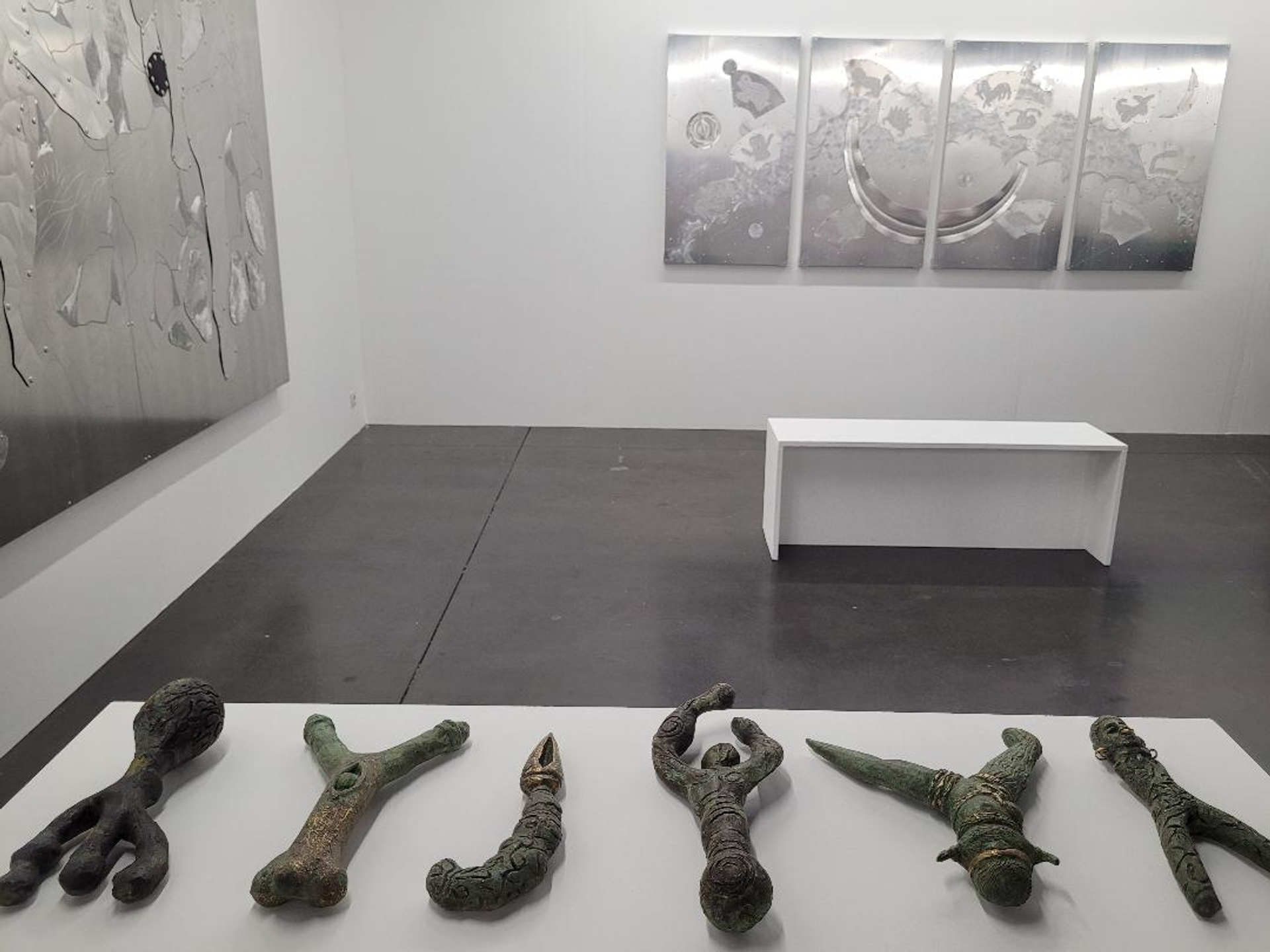 L’enseigne hongroise a accroché notamment cette sculpture murale de Julie Béna, memento mori tout en délicatesse, disponible à 7 000 euros. L’artiste française bénéficiera d’une exposition personnelle à partir du 4 octobre prochain au Magasin-centre national d’art contemporain à Grenoble (jusqu’au 5 avril 2026).