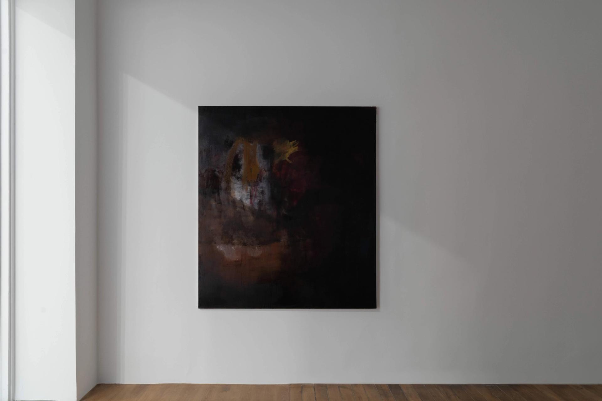 Les tableaux de Liza Lacroix ont un caractère atmosphérique. Cette série d’œuvres peintes au cours d’un séjour parisien en vue de l’exposition présente un jeu de ténèbres et de lumières avec une dominante de bruns et de beaux effets de pourpre. Sans rien de figural, ni de gestuel, il s’en dégage une violence sourde. L’accrochage joue de longs intervalles entre les tableaux et deux d’entre eux sont laissés chacun dans une salle latérale non éclairée, qui invite au recueillement. À côté de ces peintures où le regard vient naturellement se plonger, elle a épinglé des larges feuilles de papier blanc marquées de quelques traits au crayon, ébauches de formes ou symboles de l’infini en traits répétés. Ils offrent une forme d’apaisement, voire de respiration. Liza Lacroix introduit un élément de perturbation dans son exposition savamment composée. Le texte mis à la disposition du visiteur est la reprise d’un article du Daily Mail consacré à un mannequin épouse d’un célèbre héritier américain, et disparu avec lui dans la chute de l’avion qu’il pilotait. « XXX she's so beautiful » se réfère visiblement à cette célébrité qu’il n’est nul besoin de nommer. Quel rapport entre son travail et cet article de tabloïd mis en ligne il y a plus d’un an, en dehors d’une possible fascination de l’artiste pour la figure évoquée ? Le signe en tout cas que Liza Lacroix ne s’en tient pas à l’autonomie de l’œuvre d’art et que son abstraction peut se nourrir d’épisodes traumatiques ou s’accompagner d’autres types de récits que ceux que nous pourrions imaginer. Les titres des tableaux – et notamment celui-ci : I spew death words (je vomis des paroles de mort) – donnent un autre indice de ce décentrement.