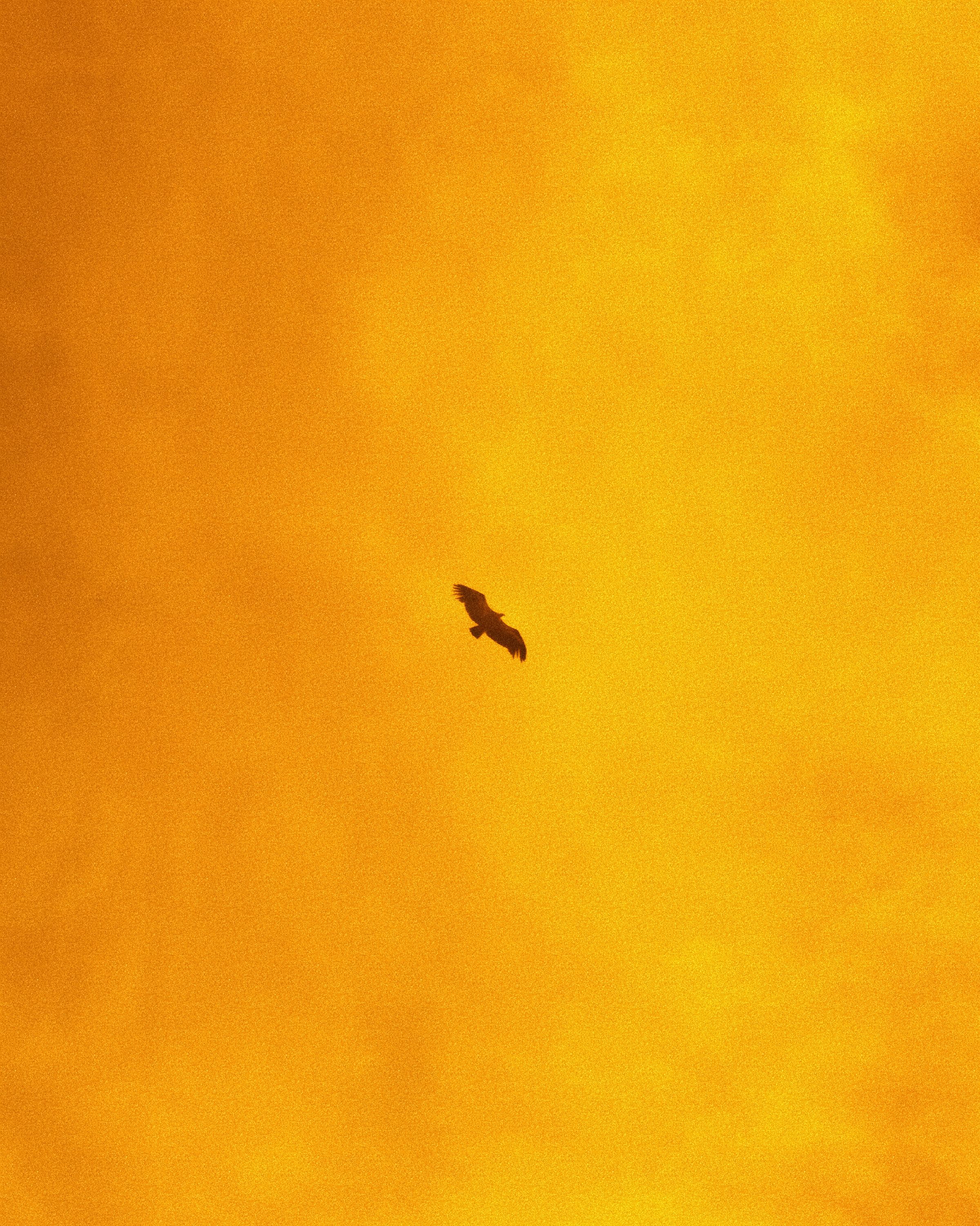 Son travail se concentre sur les questions « du vivant, de la structure clanique, du lien et de l’appel à l’aventure », « une approche relevant de la fable documentaire ou encore du ‘réalisme magique’ », selon la Maison Ruinart. L’artiste joue avec la lumière, les symboles et les monochromes, dimensions que l’on retrouve notamment dans Alchimia : la série lauréate est en effet en nuances de noir et blanc et d’or. Réalisées lors d’une résidence en Champagne en 2025, ces images, toutes verticales, racontent un séjour dans une région qui lui était inconnue, et mêlent humain, paysages, images d’archives et prises de vue studio. « J’ai arpenté la campagne champenoise comme un territoire façonné par la présence ancienne d’un océan disparu. A la recherche des fragments du monde naturel, j’ai photographié fossiles marins, carrières de sable, insectes, poussières d’étoiles, phénomène météorologique, ruche, oiseau, herbes brûlées, auxquels répondent archives astronomiques et visages d’hommes reclus dans la forêt », explique-t-elle.