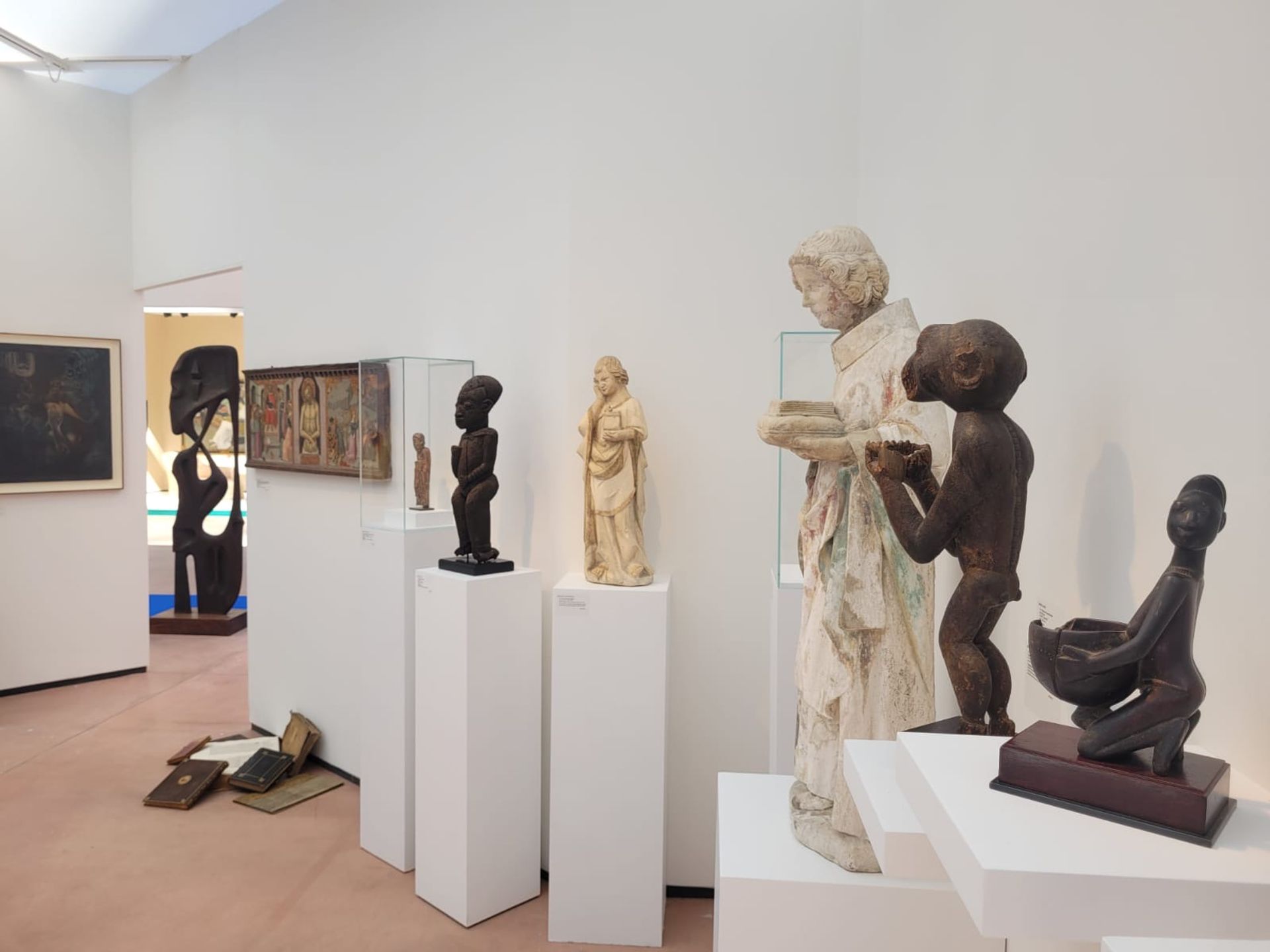 L’autre stand renversant de cette édition de Fine Arts Paris ? Assurément celui concocté par le commissaire Jean-Hubert Martin avec des pièces provenant des galeries Brimo de Laroussilhe, Didier Claes, Georges-Philippe & Nathalie Vallois et la librairie Clavreuil. L’accrochage décoiffant fait dialoguer époques et formes, de manuscrits enluminés à un buste d’Adrien Dax, en passant par un exceptionnel Baga à 950 000 euros. Une réussite, portée par la qualité des pièces.