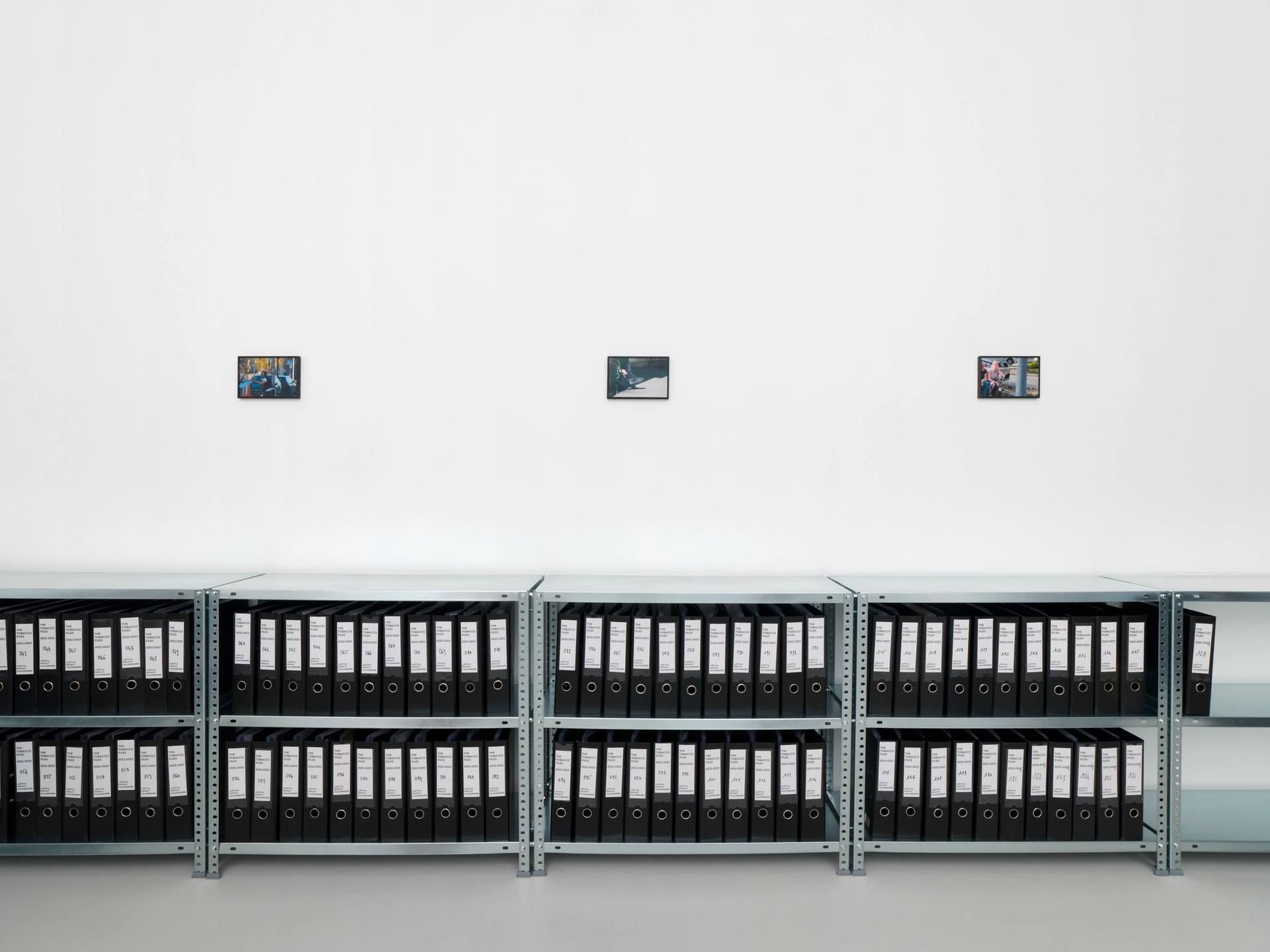 « Le cœur et les poumons » est un titre qui réunit en les distinguant les deux expositions simultanées de Laëtitia Badaut Haussmann. Côté poumons, à la galerie Allen, ce sont des dizaines de classeurs, contenant des milliers d’images de fumeurs de toutes provenances, rangées dans des étagères basses. Les classeurs sont offerts à la consultation et quelques rares images en ont été extraites pour être présentées aux murs. Le caractère imposant de cette archive est contrebalancé par un empilement de cubes de verres acryliques au contenu des plus discrets. Un blister pour paquet de cigarettes, un mégot de blonde, preuves dérisoires et belles dans cette enquête sur des jeux de pouvoir.