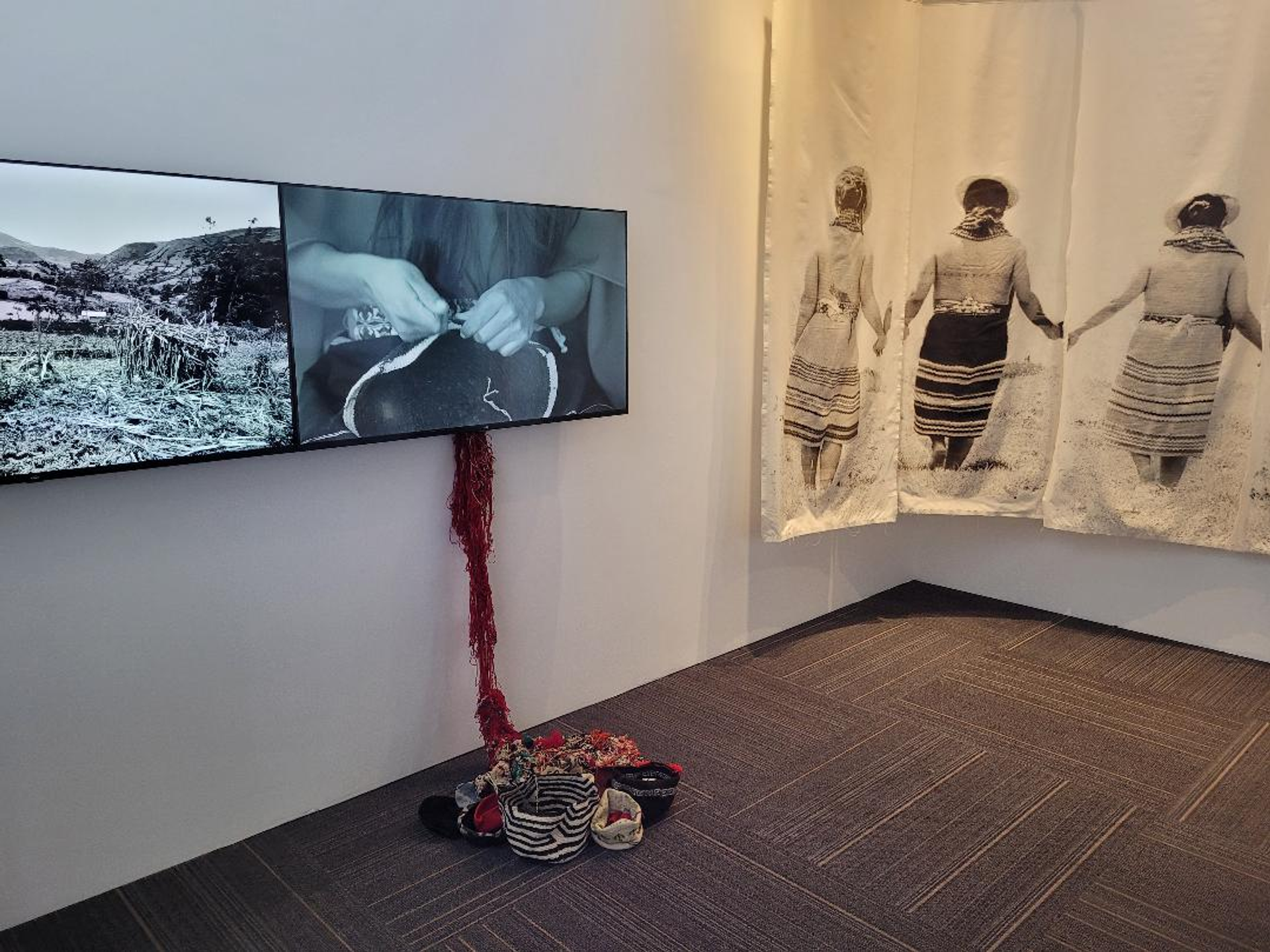ARTBO « est une foire certes locale, mais importante en termes de contenu, de qualité, bien curatée et synonyme de fraîcheur pour les visiteurs, car beaucoup de galeries ne sont pas encore dans le circuit international. C’est une foire de découvertes ! », abonde Alex Mor, codirecteur de la galerie parisienne mor charpentier. Dans ce registre « frais », il faut mentionner le secteur Proyectos, curaté par Carla Acevedo-Yates, l’une des membres de l’équipe exclusivement féminine de la prochaine Documenta 16 de Cassel. Il mettait l’accent sur la très vivante tradition du textile en Amérique latine. Soit dix artistes « associant cette tradition avec d’autres médiums, dont la vidéo », résume la commissaire. Parmi ces artistes figurait Maria Sosa, qui va représenter le Mexique à la prochaine Biennale de Venise en 2026 (Galería Extra, Guatemala) et s’intéresse au corps féminin associé aux références botaniques et aux peuples autochtones, sur fond de colonisation… Autre coup de cœur, cette fois à l’étage du dessous, au sein du secteur dévolu aux jeunes enseignes : l’installation de Charlie Mai montrée par la galerie Plural Nodo Cultural (Bogotá). Sur un grand store apparaît un paysage traditionnel chinois de montagnes et d’eau ; mais en tournant le store, le chantier du métro aérien de Bogotá apparaît. Une construction financée à 70 % par les Chinois… et réalisée par leurs compatriotes, discrète communauté venue s’installer dans la capitale. « J’ai voulu illustrer la tension actuelle en Colombie entre l’influence des États-Unis et maintenant celle de la Chine pour devenir le partenaire principal, confie l’artiste américano-chinois basé à Bogotá. La Colombie est à un tournant ! J’ai voulu rappeler l’ironie de l’histoire : les Américains avaient recruté des Chinois pour bâtir le métro de Los Angeles car ils avaient besoin de cette main-d’œuvre bon marché. Aujourd’hui, les Chinois possèdent les savoir-faire, ce sont aussi des ingénieurs chinois qui viennent à Bogotá ».