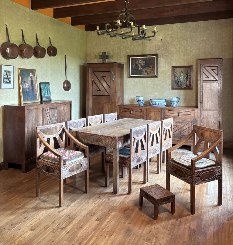Deux ans après avoir célébré le centenaire – et le renouveau – du mouvement artistique breton Seiz Breur, la maison Thierry-Lannon présente à Brest, jeudi 9 octobre, un ensemble réalisé par l’une des figures majeures du groupe, Jeanne Malivel. Peintures, gravures, céramiques, mobiliers et textiles ont été créés pour la maison de la sœur aînée de l’artiste, Marie-Charlotte Malivel, et sont restés dans la famille jusqu’à aujourd’hui. Fidèle aux principes du mouvement, l’artiste tente de tisser des liens entre le modernisme de l’art déco des années 1930 et les racines de la culture bretonne. Les 123 lots qui composent la vacation comprennent des gravures (Le vieil arbre, 1922, est. 400-600 euros), une série d’assiettes en faïence réalisées par Henriot à Quimper (est. 50-60 euros la paire) ou le mobilier complet de la maison sculpté par Julien Bacon sur des dessins de Jeanne Malivel (Fauteuil à motifs rayonnants, 1919-1922, est. 3 000-5 000 euros).
