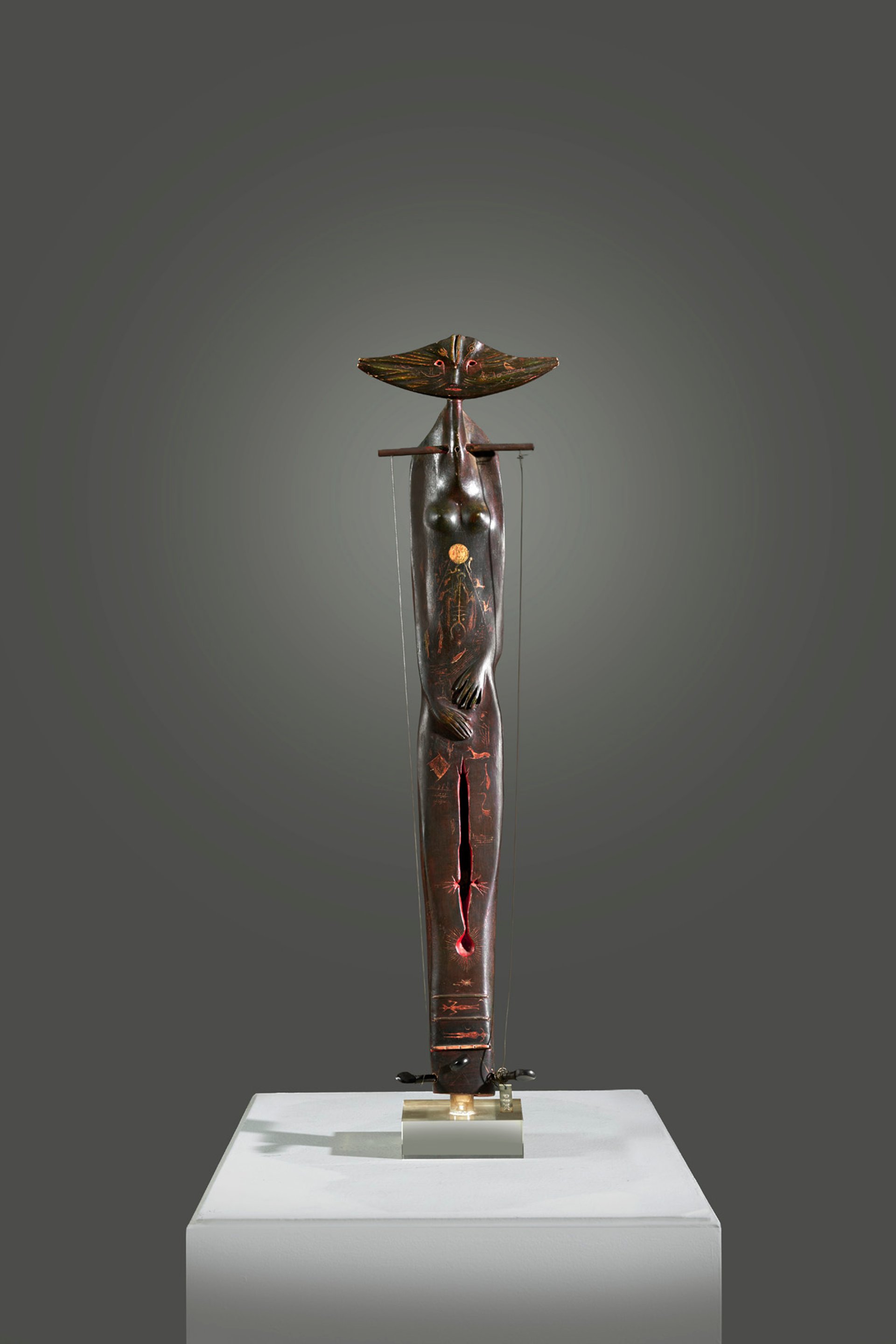 Leonora Carrington, La Femme-luth, 5 mars 1951, bois sculpté, gravé, peint, assemblé et cordes en métal et nylon. © Xavier Defaix. Courtesy Piasa