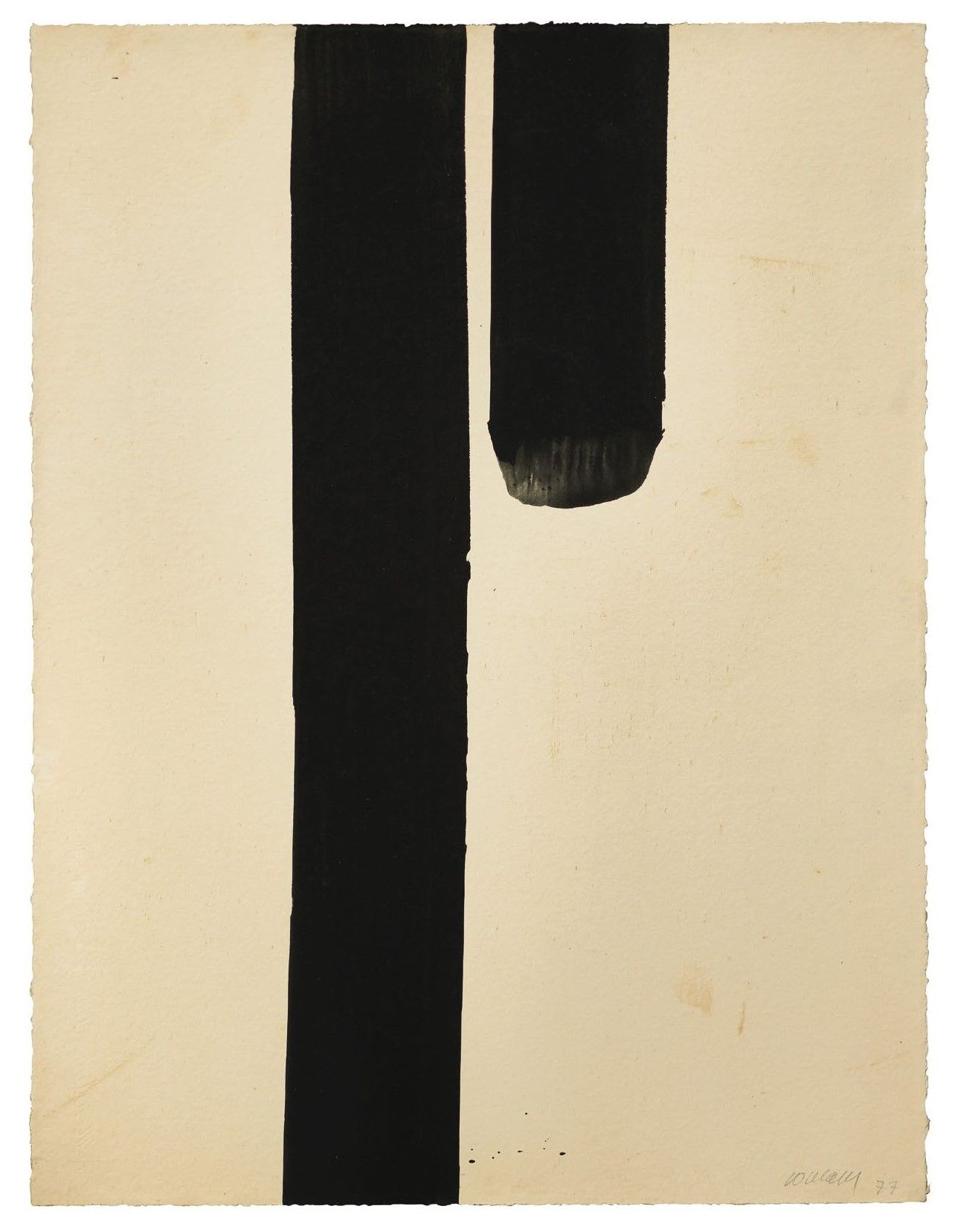 Pierre Soulages, Gouache sur papier marouflé sur panneau 76x56 cm, 1977, collection Colette Soulages.