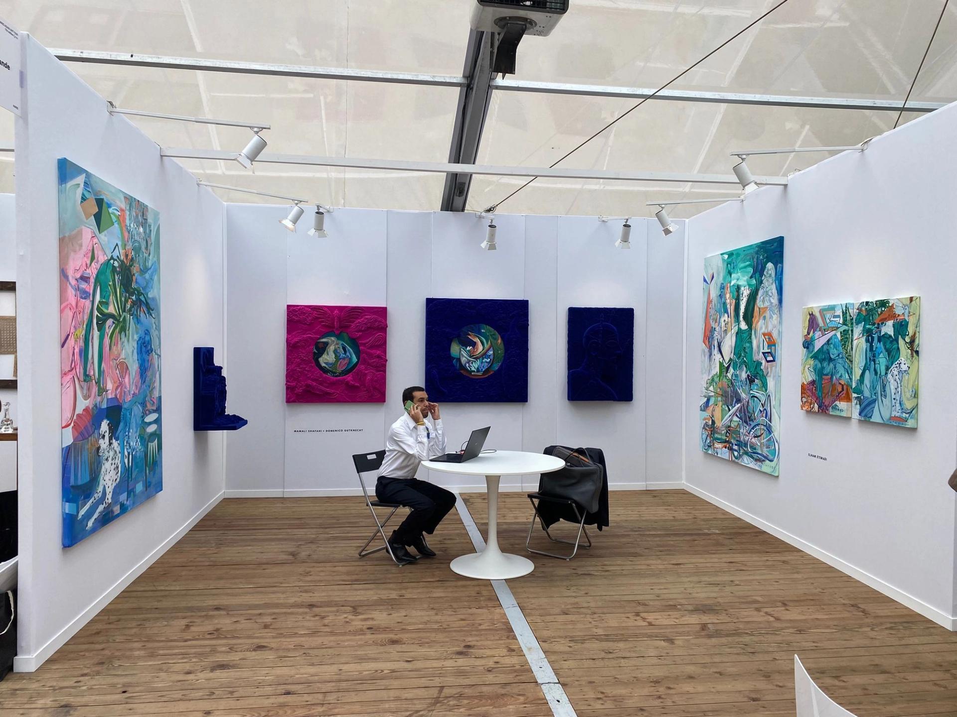 La scène iranienne est bien représentée par la galerie parisienne La La Lande, qui expose les œuvres pop et oniriques du duo d’artistes Mamali Shafahi et Domenico Gutknecht autour de 15 000 euros. L’enseigne vient juste d’inaugurer dans son espace rénové près du Centre Pompidou l’exposition « Résonances archaïques », réunissant neuf artistes issus en partie de cette région, , dont certains déjà très en vue, d’Aïcha Snoussi à Younes Ben Slimane (jusqu’au 28 novembre). Enfin, prendre le pouls de la création en Azerbaïdjan, on s’arrêtera sur le stand de la Gazelli Art House (Londres). Explorant les thèmes de l’identité et de la vulnérabilité, les toiles du jeune artiste Agil Abdullayev sont de toute beauté. Pour l’instant, leur prix n’excède pas les 10 000 euros...