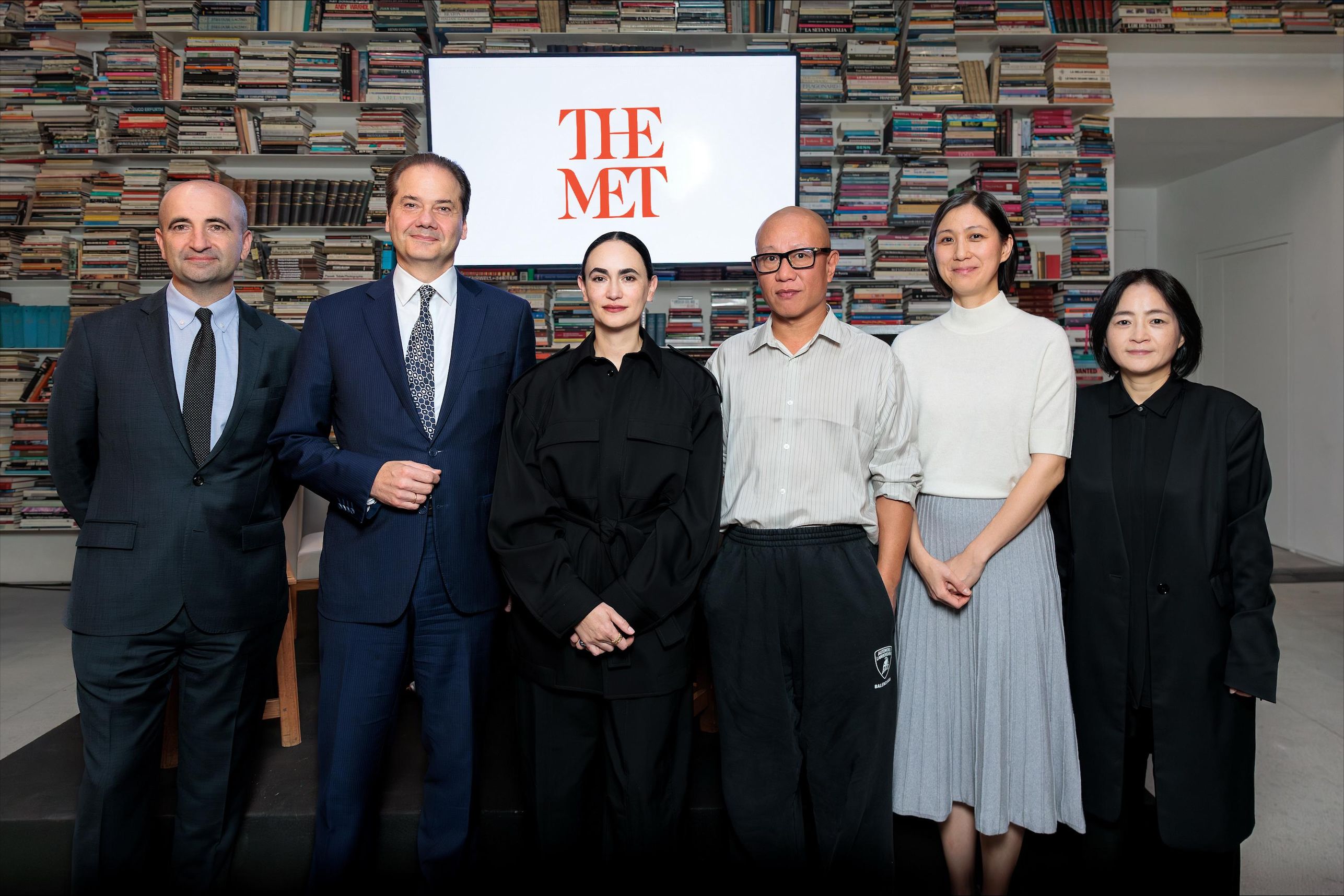 Max Hollein, directeur du Met, aux côtés de David Breslin, Frida Escobedo, Liu Wei et Lesley Ma lors de l'annonce de la « Genesis Facade Commission » 2026 à la librairie 7L à Paris, le 21 octobre 2025. The Met