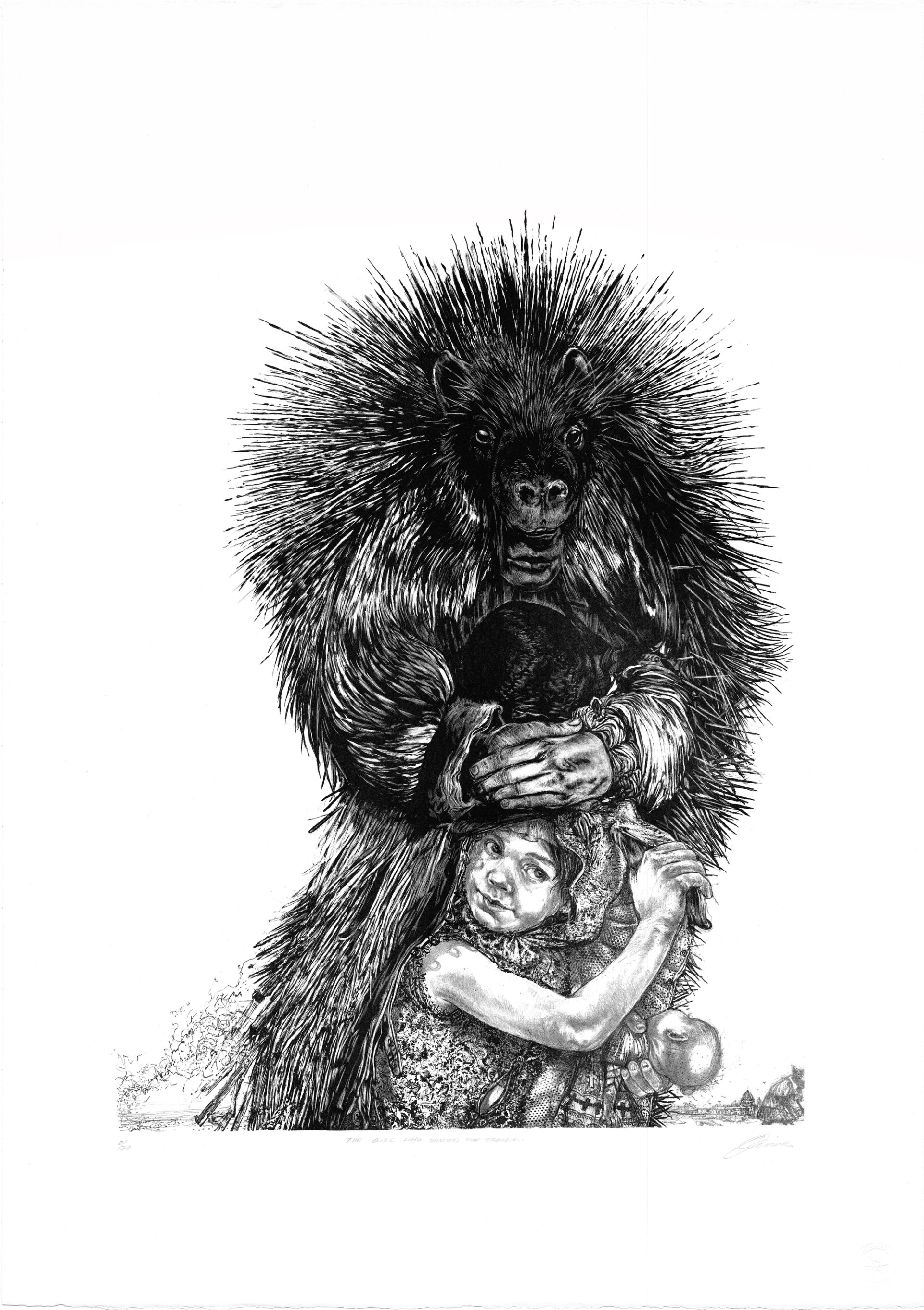 Diane Victor, The girl who started the trouble, troisième lithographie du triptyque The Holy Masquerade, 108x78 cm, 2019.