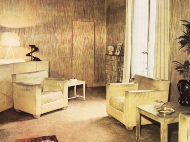 Le bureau-bibliothèque du pavillon Une Ambassade française de la Société des artistes décorateurs par Pierre Chareau. MAD