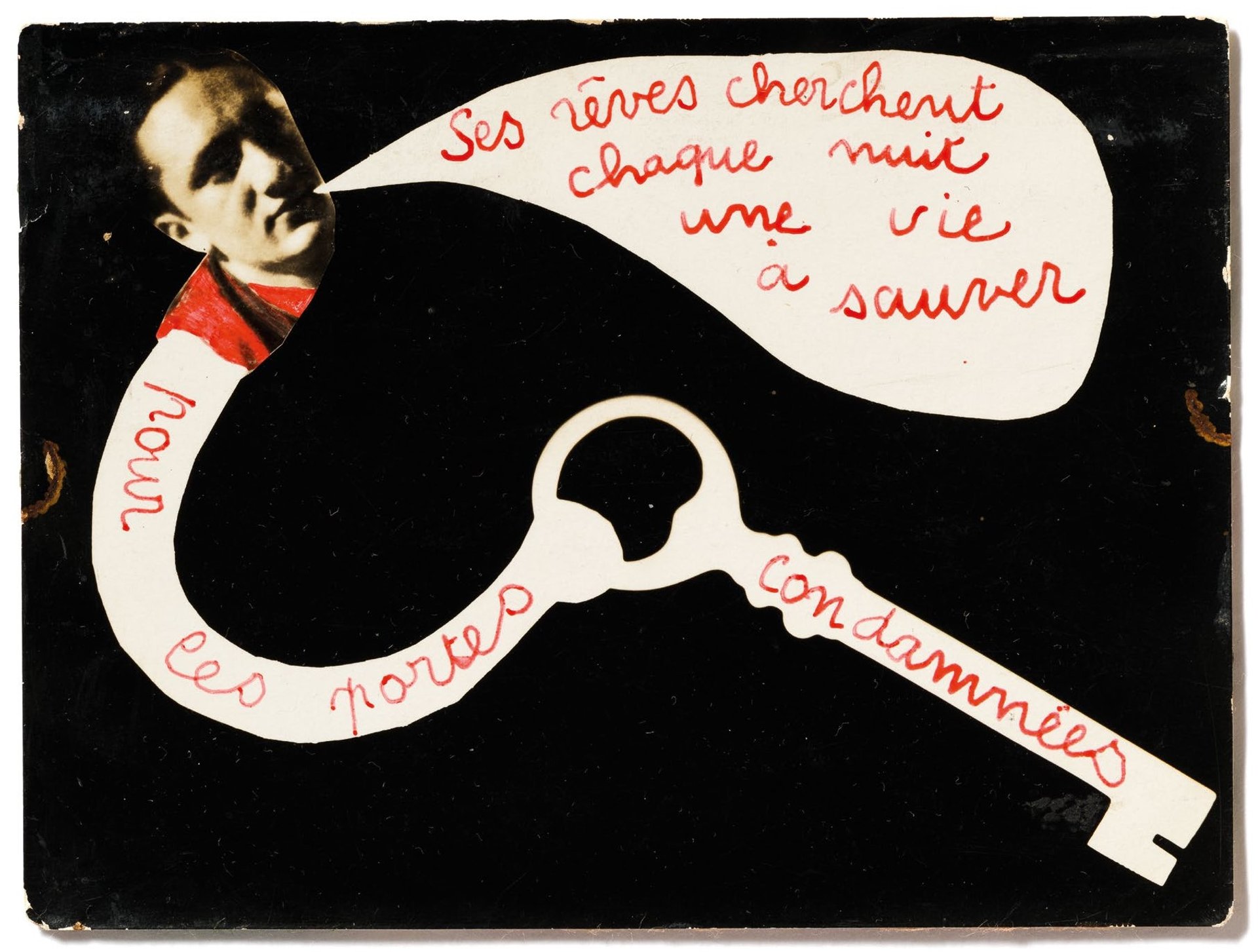 En 1979, les sociologues Françoise et Jean Duvignaud publient, avec la complicité de Jean-Pierre Corbeau, La Banque des rêves, une vaste étude anthropologique visant à recueillir les rêves des oubliés de Sigmund Freud, ces citoyens « lambda » qui sont pourtant le nerf de la société. En conclusion de l’ouvrage, Jean-Pierre Corbeau célèbre la liberté du rêve, espace de jeu gratuit, qui en fait un contre-pouvoir aussi intime qu’universel. Plus loin, une vitrine réunissant un florilège d’écrits et d’œuvres rend hommage aux maîtres dans l’art de mêler l’inconscient à la réalité : les surréalistes. Le groupe entretenait une relation d’amour-haine avec la psychanalyse dont ils se sont largement nourris, tout en dépassant son cadre trop restrictif.