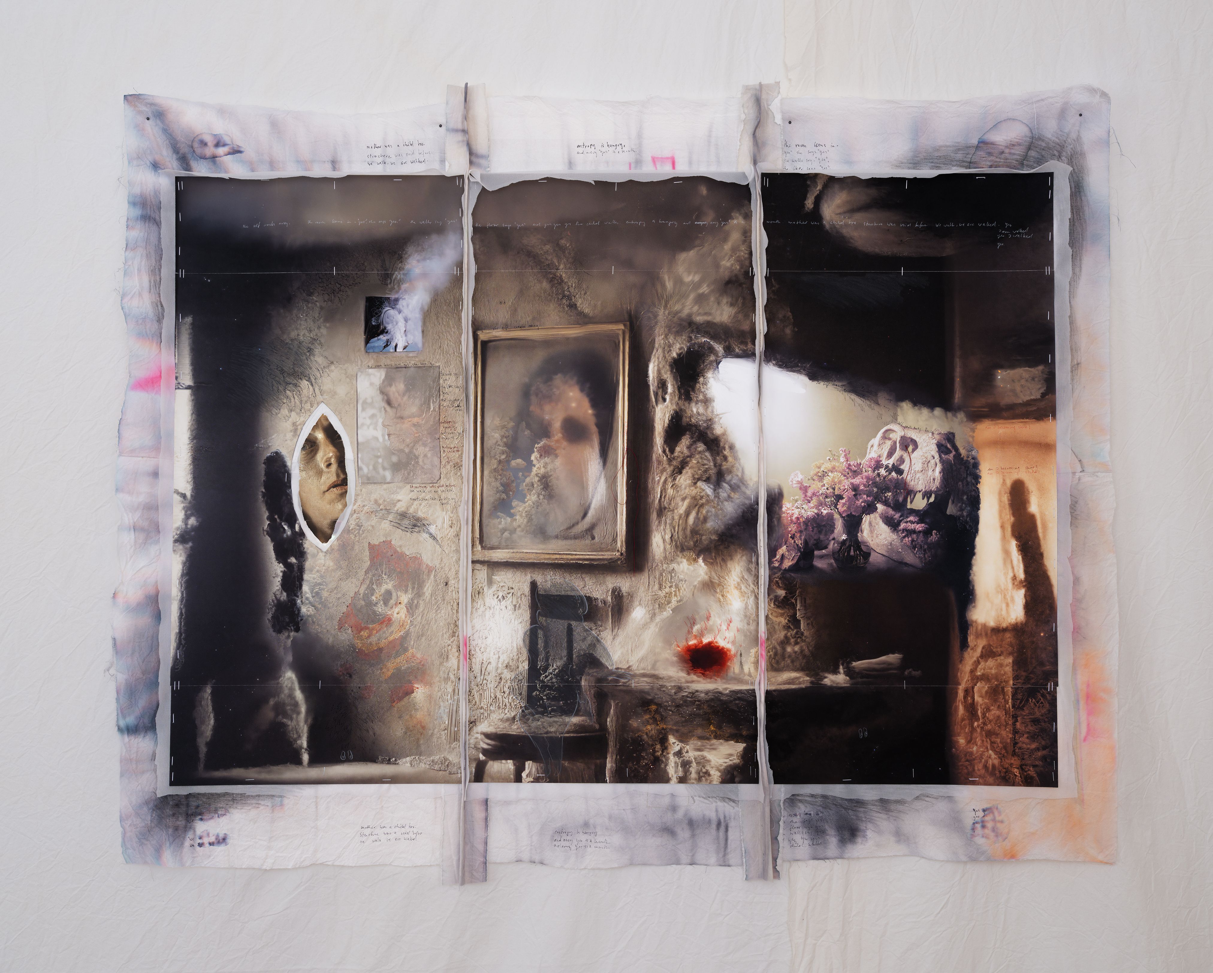 Cette année, les visiteurs sont accueillis par une longue frise de 36 mètres, imaginée par la galerie Poggi, qui réunit plusieurs séries de Sophie Ristelhueber dans un saisissant mélange de tirages de tous formats. Grande figure de l’histoire de la photographie, qui a ouvert une brèche entre le documentaire et le champ de l’art, la Française a cette année été récompensée par le prestigieux prix Hasselblad. Photographe du réel, elle incarne une approche plus traditionnelle du médium, à rebours d’un marché cherchant sans cesse à dépasser les limites de la représentation. Si de nombreux stands présentent de belles propositions relevant d’une photographie plus classique, la foire montre cette année à quel point l’image tend à se défaire de sa matérialité.