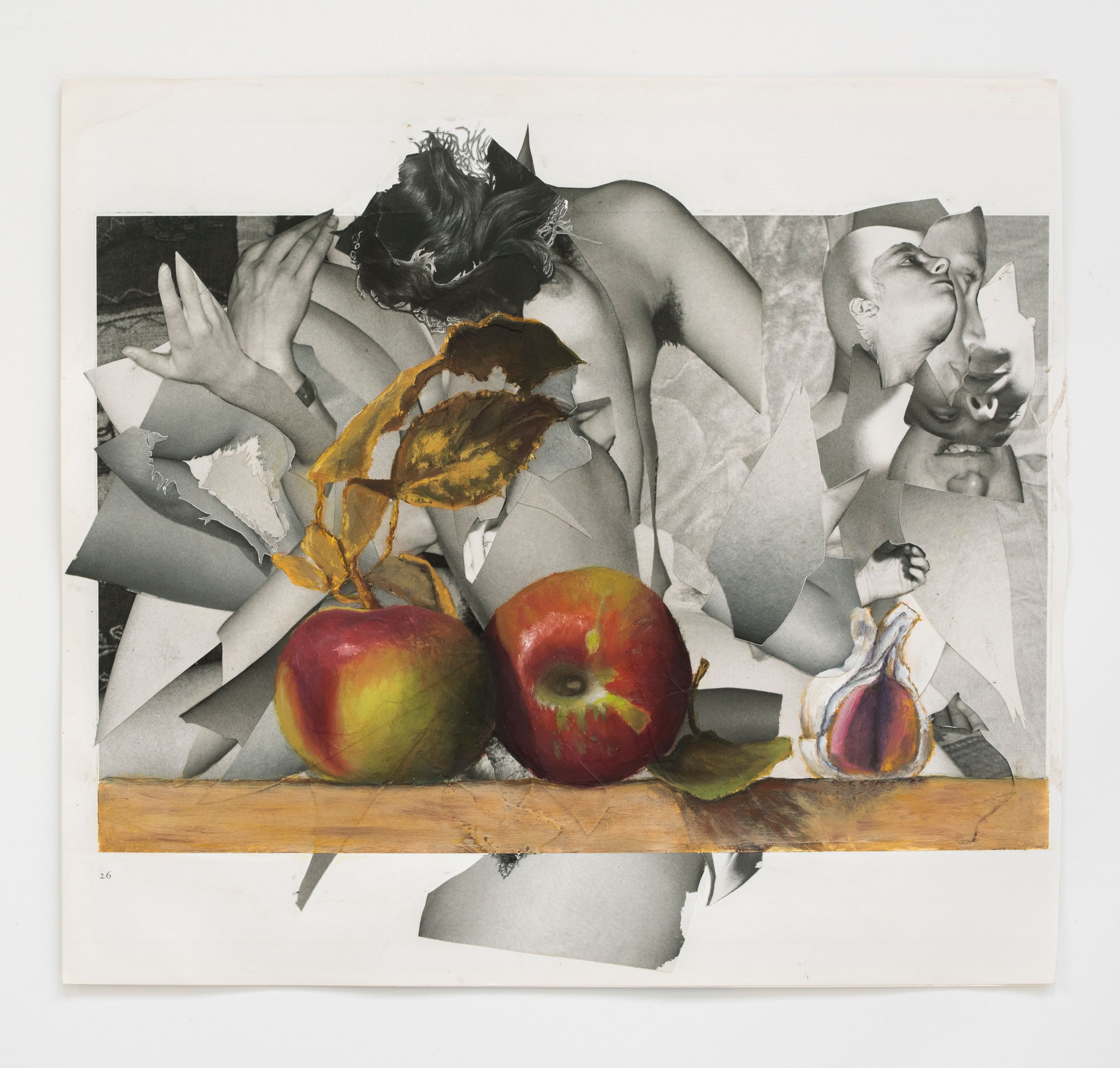 Justine Kurland, Two Mac Apples and Garlic Clove, 2025, huile sur collage photographique. Galerie Higher Pictures. Courtesy of the artist and Higher Pictures
