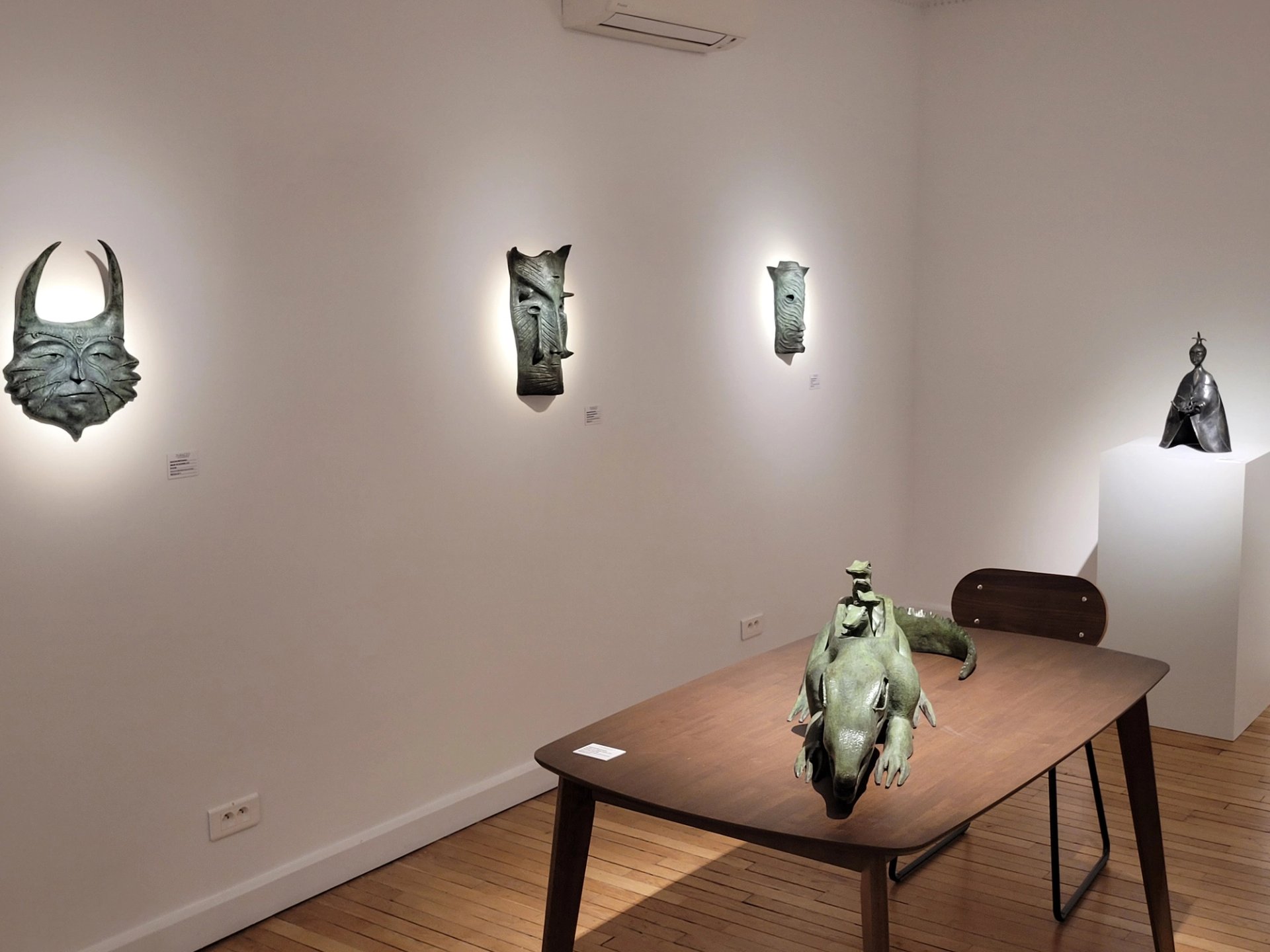 Dans l’ensemble, beaucoup de visiteurs, jeudi, parlaient espagnols. Nombre de Latino-Américains ont d’ailleurs des attaches en France, comme le pointe Cannelle Chahine, de la galerie Xippas, qui montre une sculpture de 1999 du Brésilien Saint Clair Cemin, « un artiste peu montré en France », à 45 000 euros. Ce niveau de prix témoigne d’une indéniable montée en gamme de MIRA cette année, même si on retrouve toutes les gammes de tarifs sur la foire. Parmi les stands les plus remarquables figure celui de la galerie Durazzo, consacré aux sculptures de bronze encore méconnues de Leonora Carrington, « commencées en bois et béton et montrées chez le galeriste Alexander Iolas dans années 1980 avant de passer au bronze dans les années 1990 », explique Raphäel Durazzo. Le musée du Luxembourg à Paris va accueillir au premier semestre 2026 une exposition sur cette artiste surréaliste qui vécut longtemps au Mexique… Comptez entre 80 000 et 200 000 euros pour une œuvre sur le stand. Et le marchand d’ajouter : « le moderne et les noms confirmés ont le vent en poupe en ce moment ». Comprendre : à une période de rééquilibrage du marché de l’art contemporain… C’est aussi l’approche de la galerie Loeve & Co, qui montre conjointement le beau travail du peintre et créateur de tapis Art déco d’origine brésilienne Ivan Da Silva Bruhns ; et celui du chamane mexicain Alfonso García Téllez (entre 2 800 et 6 000 euros). Stéphane Corréard salue « la super équipe de la foire » et « les visiteurs de très haut niveau ». Il a déjà vendu plusieurs pièces.