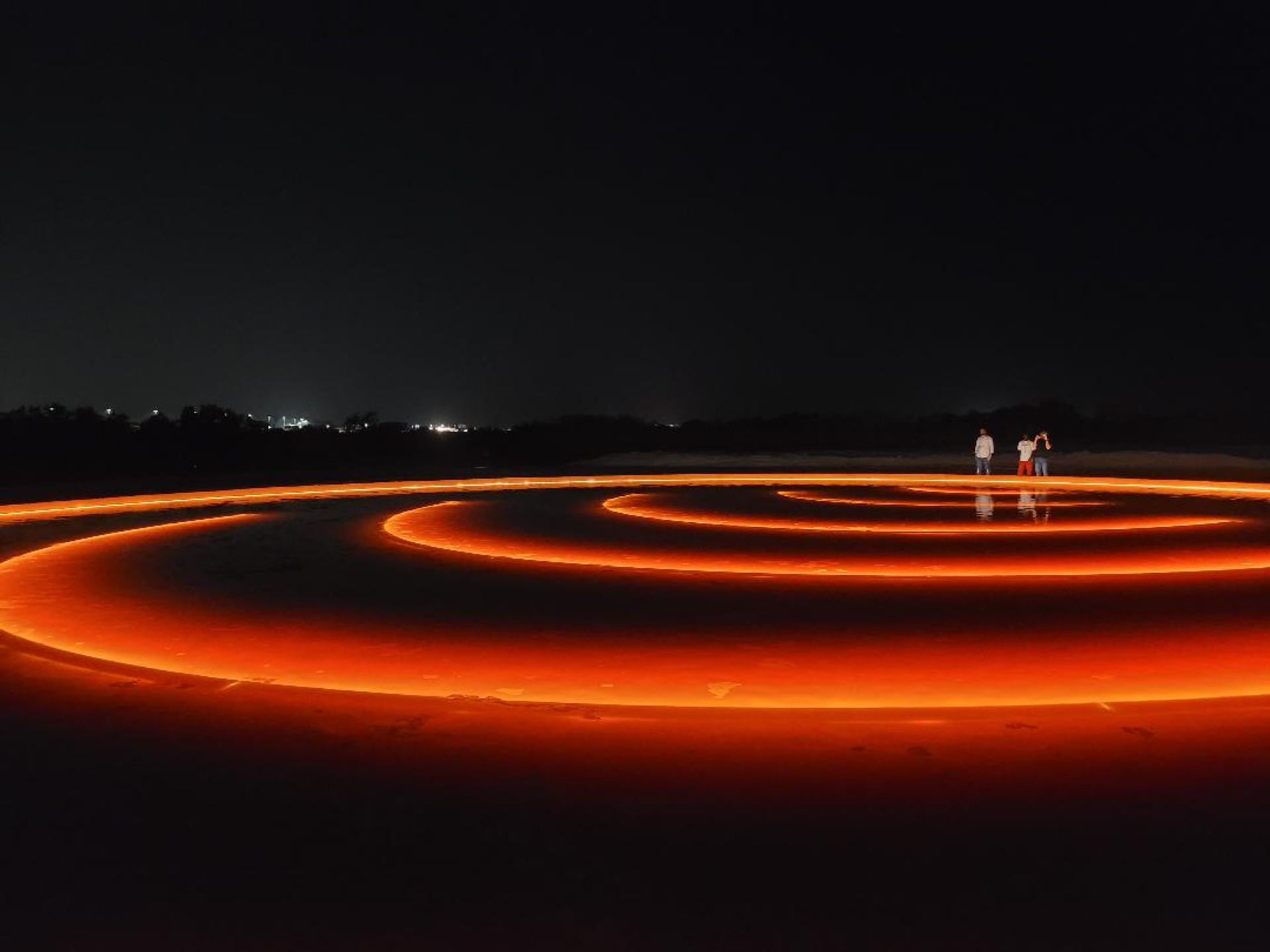 Au Souq Al Mina, nouveau complexe de boutiques et de restaurants donnant sur Mina Zayed, le port où transitait avant la Seconde Guerre mondiale un important commerce de perles naturelles, se dresse une imposante sculpture de Kaws, un personnage allongé sur le dos tenant entre ses mains un globe lumineux. Sur Al Jubail Island, accessible par une autoroute flambant neuve, se déploie le cœur de cette édition : un bout de désert fermé par une enceinte accueille une dizaine de pièces à la technologie sophistiquée, pour le plus grand bonheur des familles qui s’y rendent en nombre à la nuit tombée. Enfin, Manar investit un nouveau site, le village d’Al Ain, plus éloigné, avec là aussi une dizaine d’œuvres réparties au gré de deux oasis arborées.