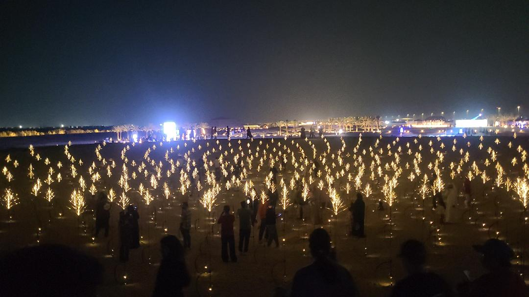 Leur point commun : l’utilisation de la lumière, de néons, de lasers ou d’écrans… Toutes ces œuvres s’apprécient à la nuit tombée, quand la chaleur devient agréable, l’exposition étant ouverte de la fin d’après-midi jusqu’à minuit, et dotée d’une impressionnante équipe accueillant et guidant les visiteurs. Ce mode nocturne, les différents parcours sous la voûte étoilée, le caractère interactif d’une partie des œuvres contribuent à une vraie « expérience » artistique qui s’inscrit dans la lignée du land art ou de « Desert X », en particulier pour un public régional pas toujours familier avec l’art contemporain, tout en étant parfaitement dans l’ère technologique. Manar alterne avec la biennale d’art public d’Abou Dhabi, qui déploie cette fois davantage ses œuvres dans l’espace urbain ou en lisière, toujours sous la houlette du département de la culture et du tourisme de l’émirat. Un projet parti du contexte d’Abou Dhabi autour de la nature et de son climat spécifique comme le précise Reem Fadda, qui pilote les projets culturels d’Abou Dhabi.