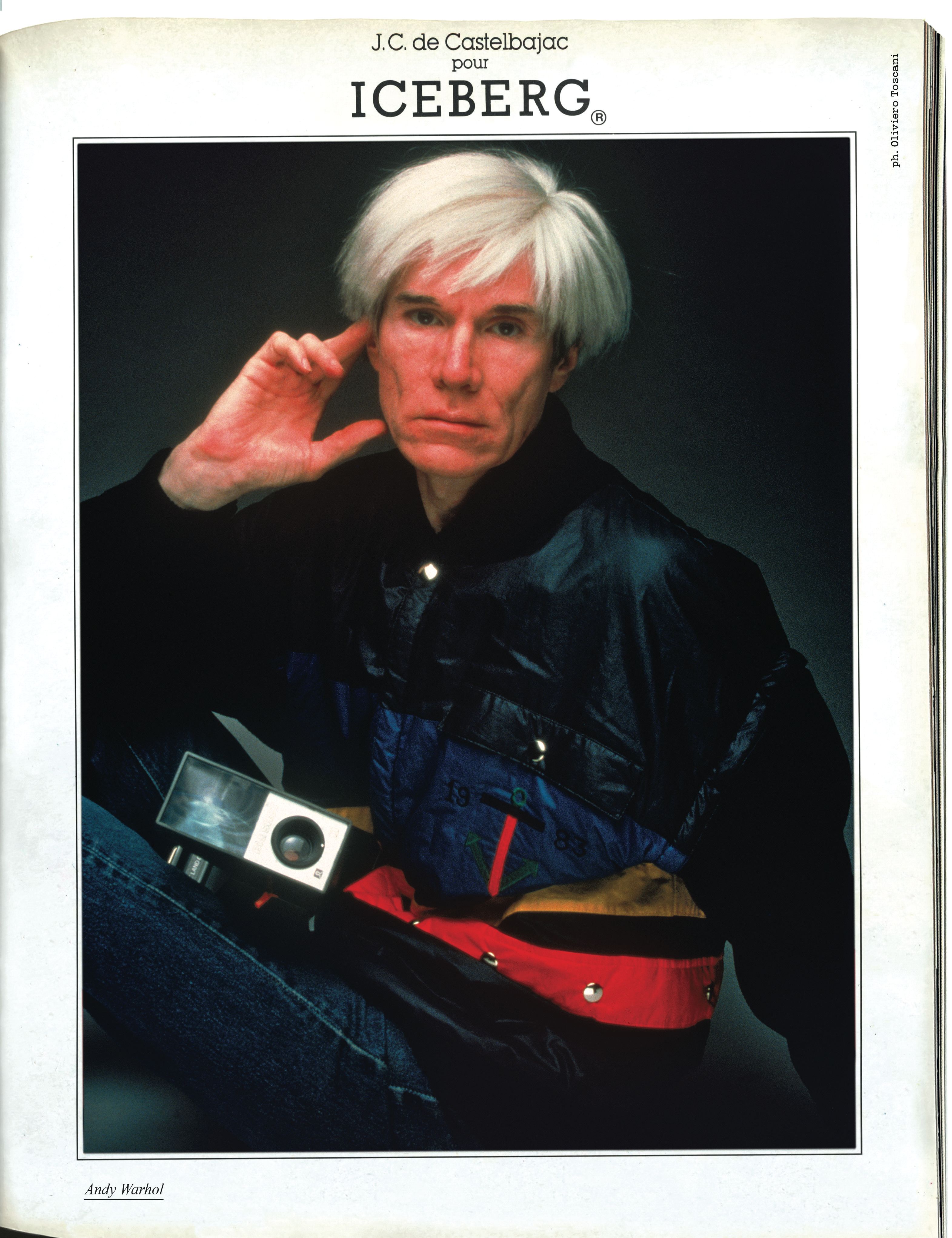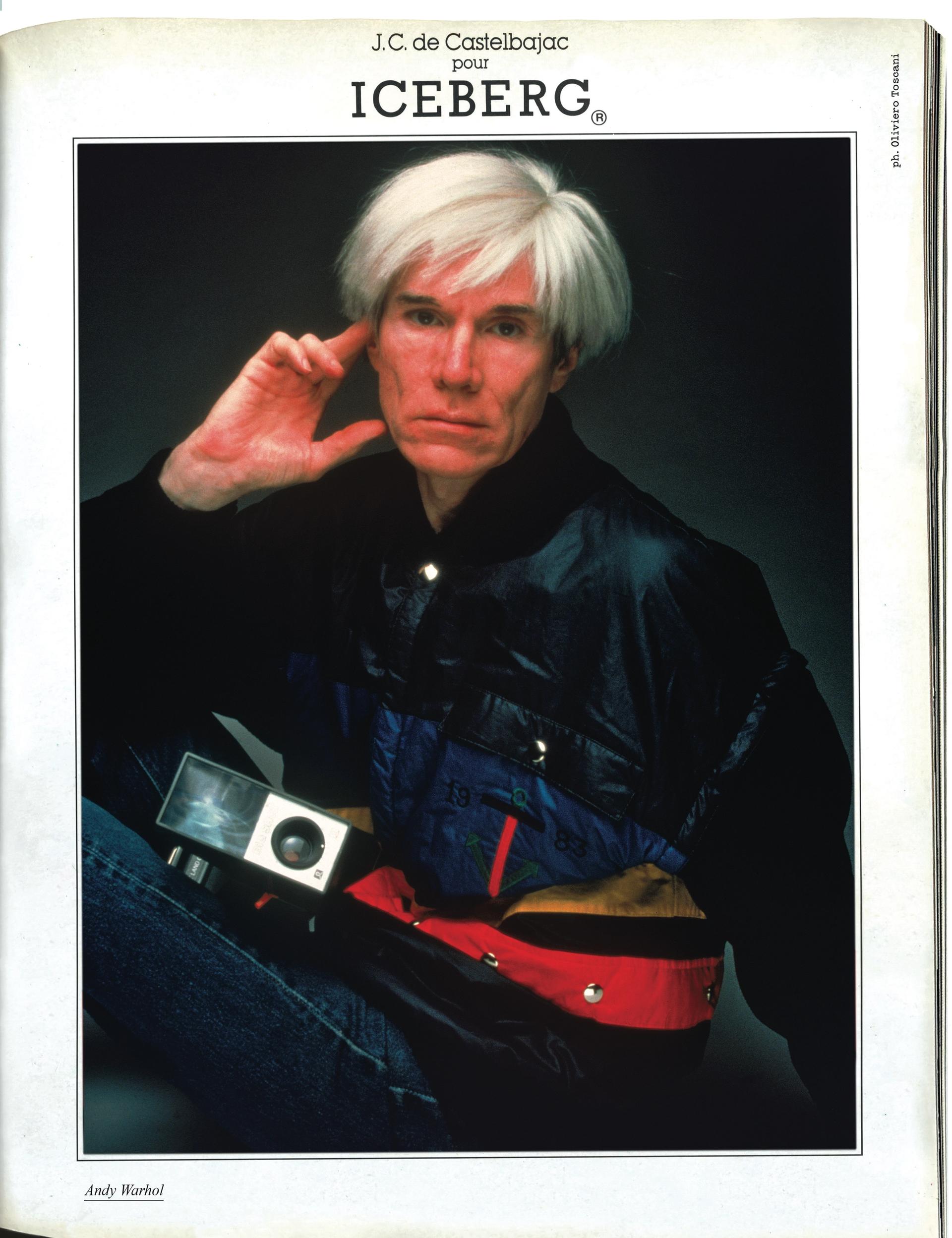 Oliviero Toscani, Andy Warhol. Jean-Charles de Castelbajac pour ICEBERG, 1982. © Oliviero Toscani, courtesy Iceberg