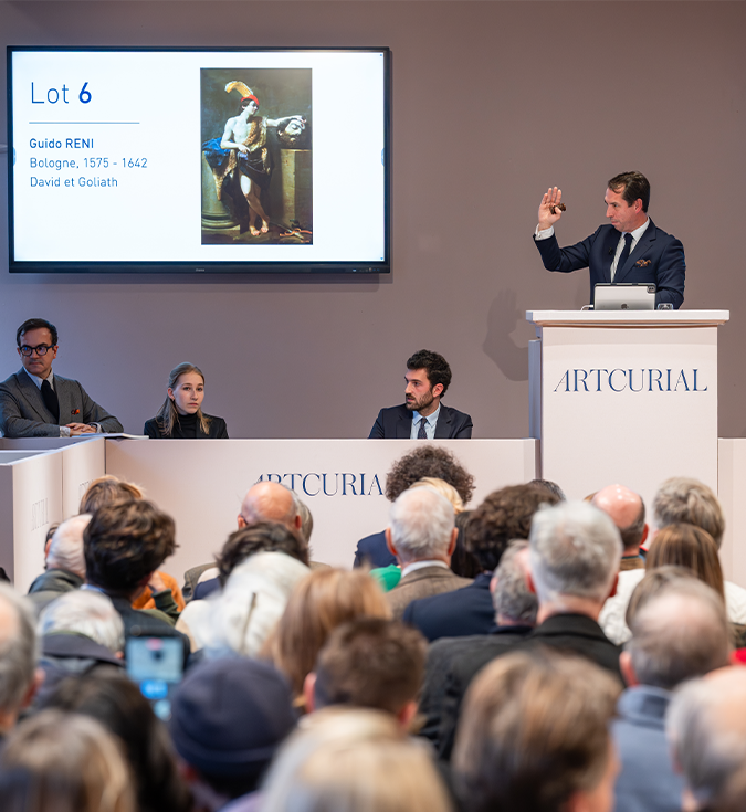 Adjudication du David et Goliath de Guido Reni en novembre 2025, vendu chez Artcurial en association avec Millon. Photo : Artcurial
