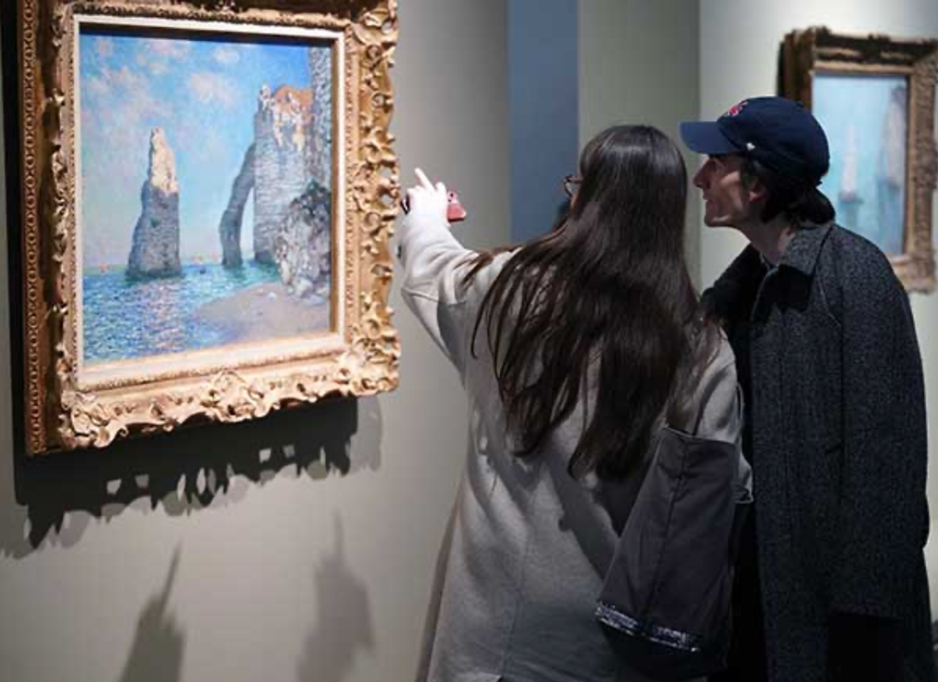 Visiteurs dans l'exposition "Étretat, par-delà les falaises. Courbet, Monet, Matisse."