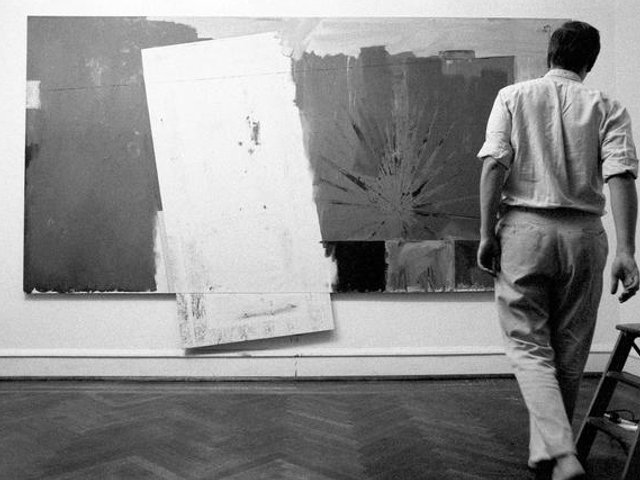 Dès le spectaculaire Cremation Project (1970), au cours duquel il brûle l’ensemble de ses peintures antérieures, l’artiste californien explore les relations entre image, langage et performativité. Il détourne les codes des médias de masse et transforme objets et photographies en instruments de questionnement esthétique et critique. Ses compositions photographiques et picturales déconstruisent les cadres et oblitèrent les visages par des pastilles colorées, comme dans Fugitive Essays (with caterpillar) (1980). Loin de se limiter à l’image, son travail interroge l’espace, le texte et la narration, développant une esthétique du fragment, de l’appropriation et du montage. Il collecte, classe et sélectionne des éléments glanés dans son environnement visuel. À la manière d’un designer bricoleur, il les manipule et les assemble, sans rien démontrer ni expliquer, mais en laissant le sens émerger de la juxtaposition.