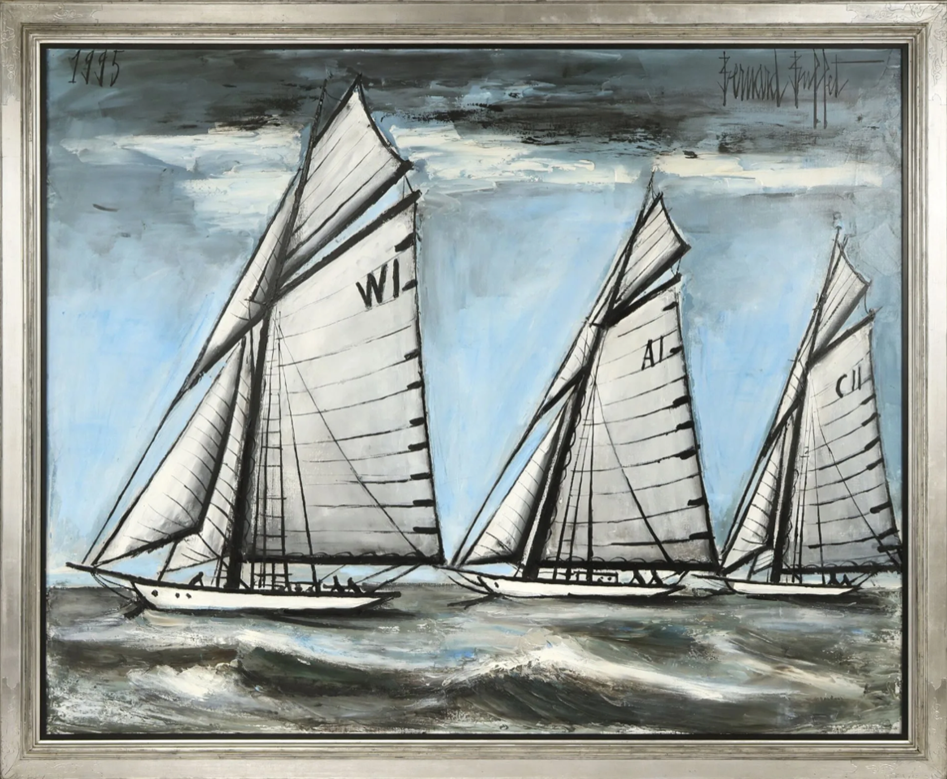 Bernard Buffet, Régates de Cowes, 3 yachts, 1995, huile sur toile, signée en haut à droite, datée 1995.