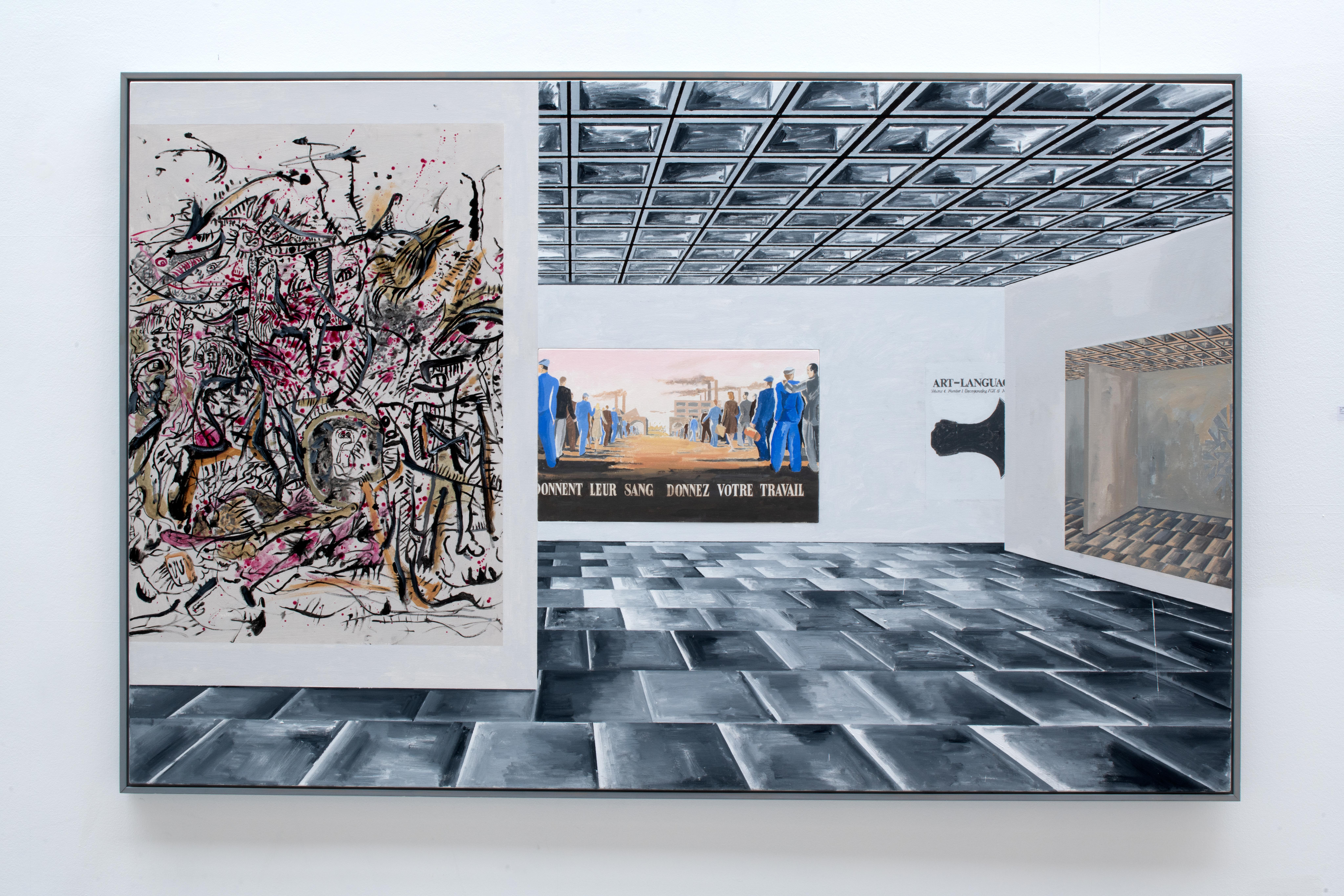 La Fondation CAB se focalise sur le travail du collectif Art & Language. L’exposition s’apparente à un aperçu rétrospectif ciblé sur une quarantaine d’œuvres, où la peinture et, pour les pièces les plus récentes, le dessin, sont majoritaires. Menée depuis 1976 par le duo formé par Mel Ramsden (1944-2024) et Michael Baldwin, associés dans une entreprise conversationnelle, où la théorie n’a jamais été séparée de la pratique, leur démarche ne cesse d’interroger l’histoire (de l’art), la pensée et les idéologies. Leurs constants allers-retours entre l’apparence et la dissimulation « transforment la pensée en matière » par-delà les contradictions inhérentes à leur travail.