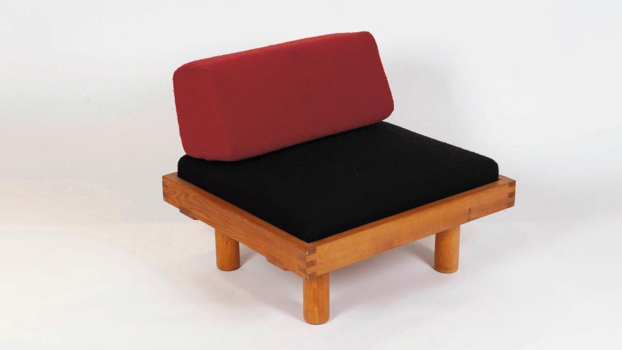 Si Pierre Chapo n’a pas l’aura de Charlotte Perriand, tous deux n’en partagent pas moins une certaine vision du design où la modernité la plus radicale est très souvent associée au savoir-faire et à l’artisanat traditionnels. Au fil du temps, ses créations, facilement reconnaissables grâce au style unique du créateur, se sont imposées sur le marché des arts décoratifs comme des pièces incontournables. L’hôtel des ventes de la vallée de Montmorency propose une vingtaine de celles-ci provenant d’une même collection. L’amateur pourra enchérir sur un ensemble de six tabourets S31 (est. 1 000 euros chacun), une série de commodes en orme (est. de 1 500 à 3 000 euros chacune), une chauffeuse en orme (est. 2 000-3 000 euros) et sur l’iconique banquette à coulisse L07B (est. 5 000-8 000 euros), dont l’élégance et la qualité d’exécution ont convaincu nombre de collectionneurs de l’utiliser en grande table basse.