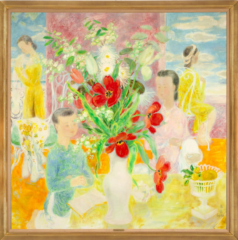 Lê Phổ, La lecture. Huile sur toile, signée en bas à droite. Courtesy Aguttes