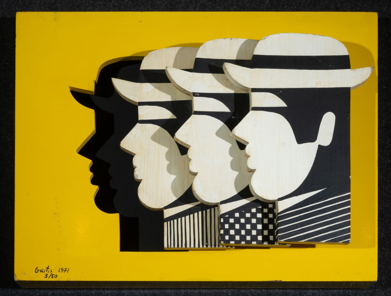 Yannis Gaitis, Sans titre [3 profils], 1971, assemblage découpé en bois peint. Courtesy de Baecque et associés