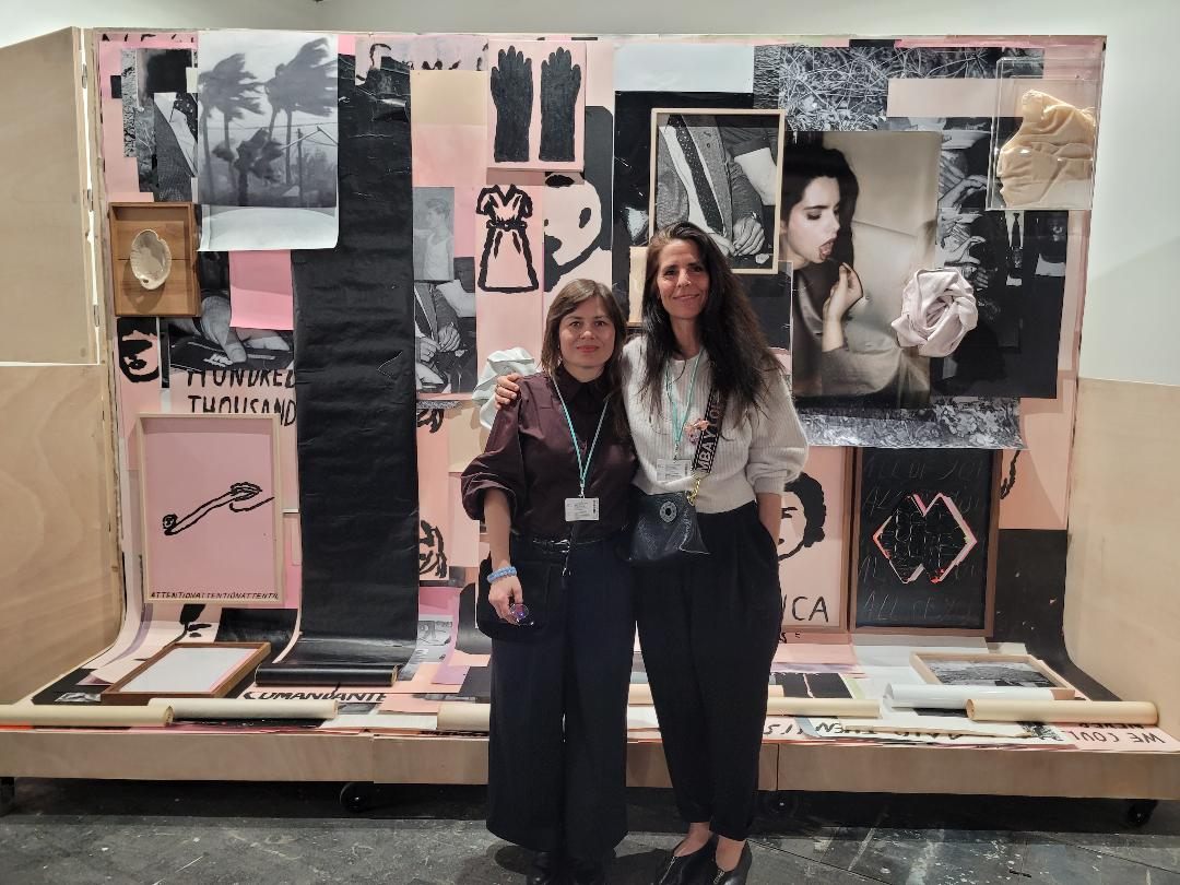 Nevena Aleksovski et Maja Babič Košir (présentées par Ravnikar Projects), devant leur œuvre commune, ARCOmadrid 2026. Photo : A.C.
