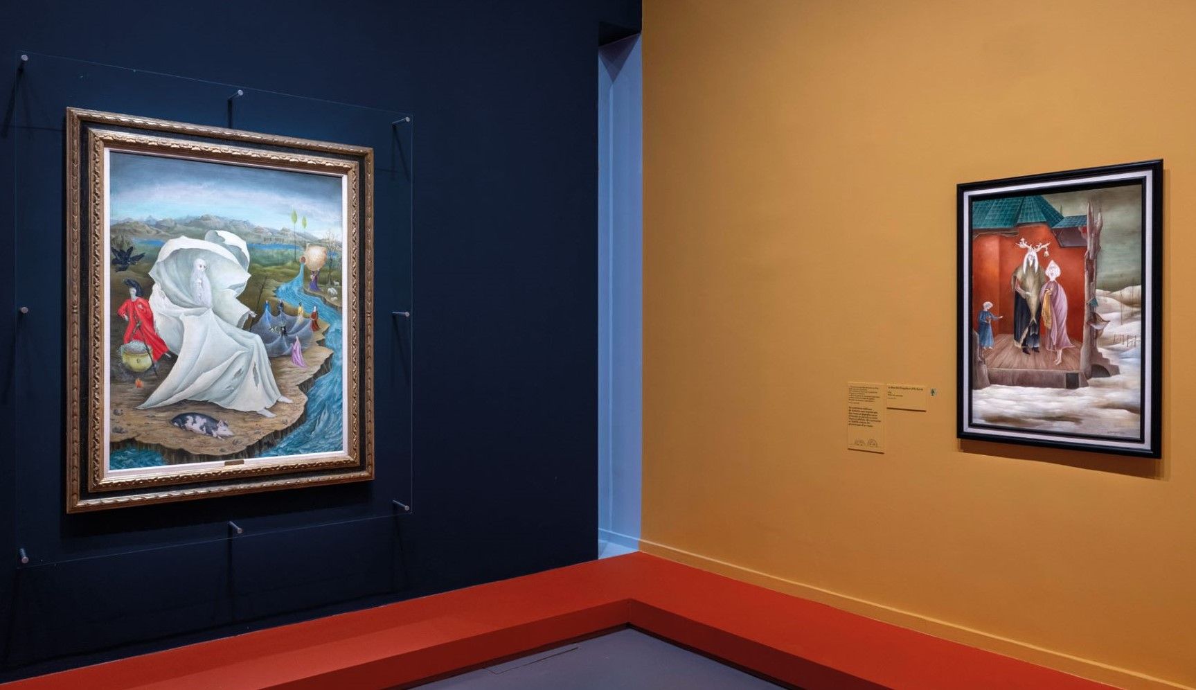 Vues de l’exposition « Leonora Carrington »; de gauche à droite : Buen Rey Elk Horn, 1948 et Tentación de San Antonio, 1945, huiles sur toile, musée du Luxembourg, Paris, 2026. © GrandPalaisRmn. Photo Didier Plowy