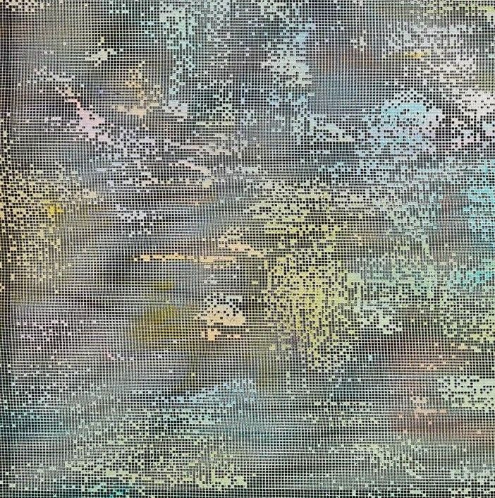 Julie Navarro, Nymphéas (dédicace), 2021. Acrylique sur moustiquaire. © Courtesy Galerie Wagner et Julie Navarro
