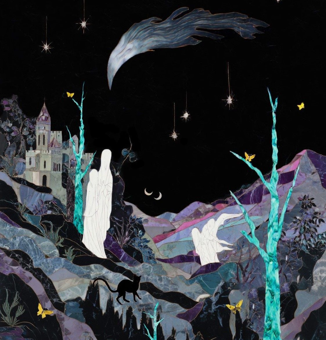 Aurèce Vettier, Seraphim at the heart of an unlikely combination of spectacular atmospheric phenomena and synchronicities as the world enters into resonance, 2026, technique mixte, 28 x 35 cm. Courtesy The Spaceless Gallery