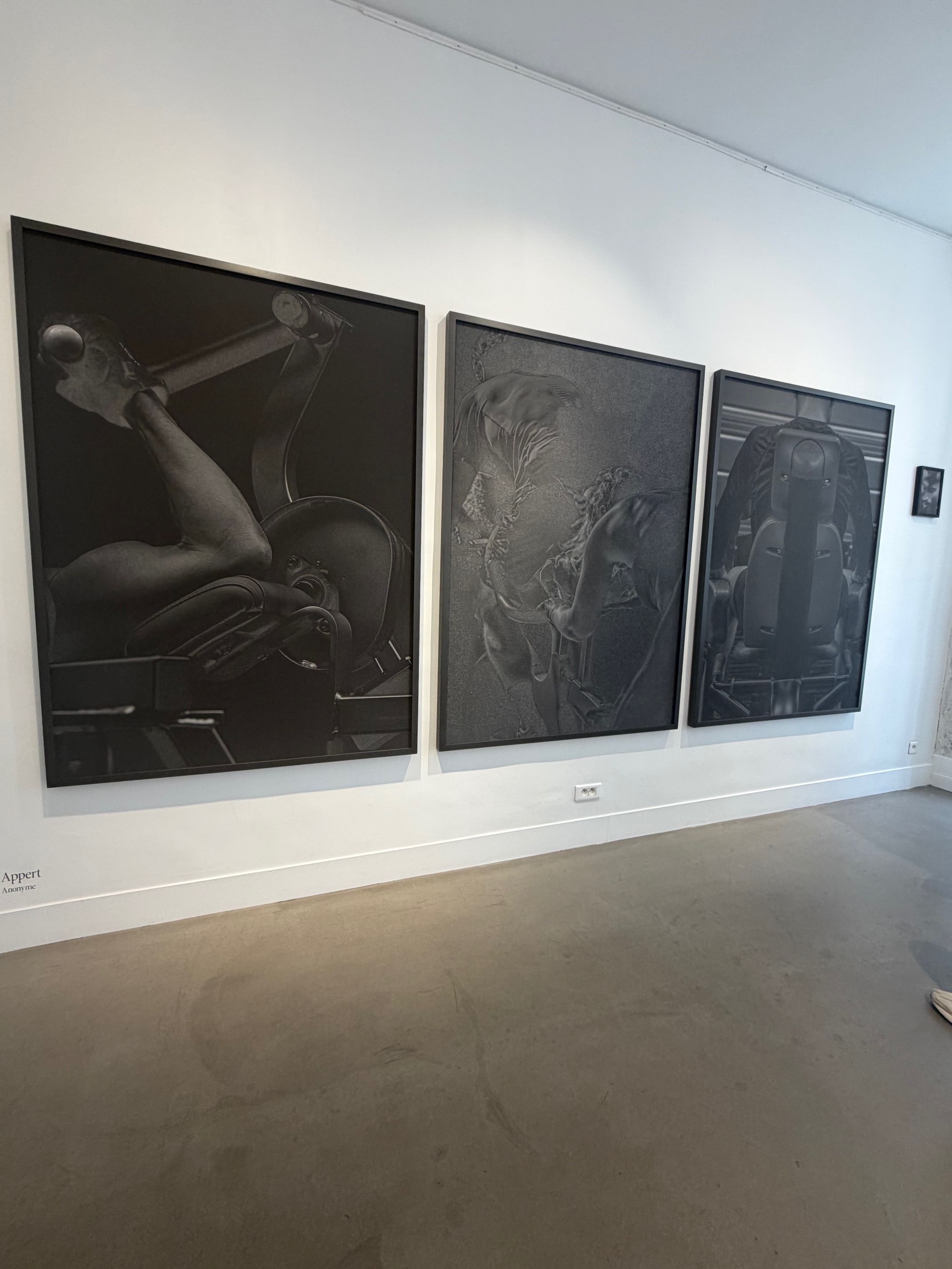 Au rez-de-chaussée, Jérémy Appert, soutenu par un mécène anonyme, ouvre le bal avec Nexus, une série d’impressions jet d’encre pigmentaire qui scrute la salle de musculation comme terrain d’enquête anthropologique. « C’est un lieu où j’ai construit mon regard, où j’ai vu les possibilités d’exploration du médium », confie l’artiste, qui évoque des moments privilégiés avec les visiteurs et des premières ventes encourageantes. Proposées à 5 000 euros, les œuvres seront visibles au festival de photo InCadaqués en octobre. En face, Sandrine Elberg, soutenue par Sophie Bordet, présente ses photogrammes alchimiques entre le cosmos et le microscopique, des mondes à la frontière du réel. Les prix s’échelonnent entre 700 et 2 500 euros.